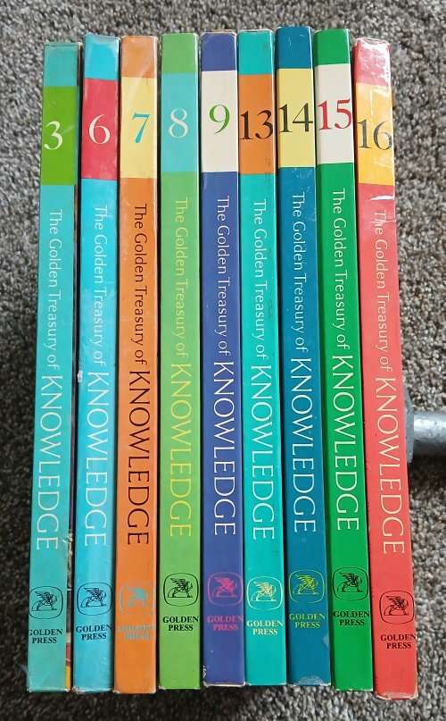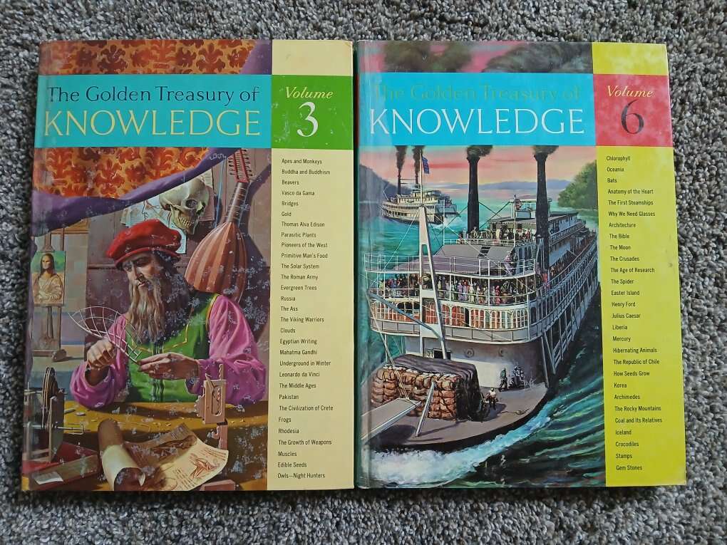 VenmoVintage children's encyclopedias, printed 1961. The Golden Treasury of Knowledge series. Walk down memory lane with grandpa, back when the world was just as complicated but you didn't immediately know about it because there wasn't internet. I have 9 of the books (16 books in the series). Wonderful graphics, detailed and descriptive writing. All books are in good condition. Or, cut out the vintage pictures for a variety of decor, scrapbooking, collage, or card making options. Willing to ship via USPS media mail if you pay in advance with venmo. $15 for the set. Cash or venmo. Check out my other listings!