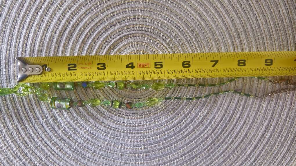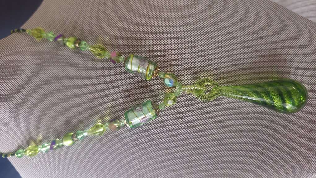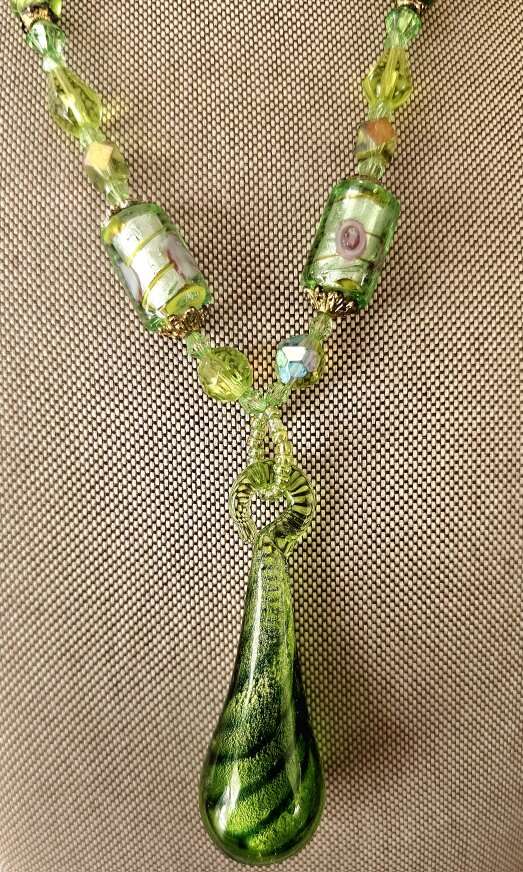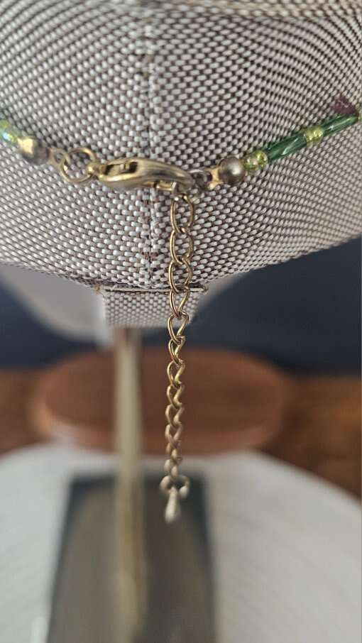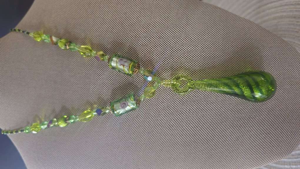 Absolutely beautiful, vintage, multi-colored green pendant, accented with borealis faceted beads and adjustable lobster claw closure. If you're fond of green then this one's for you.