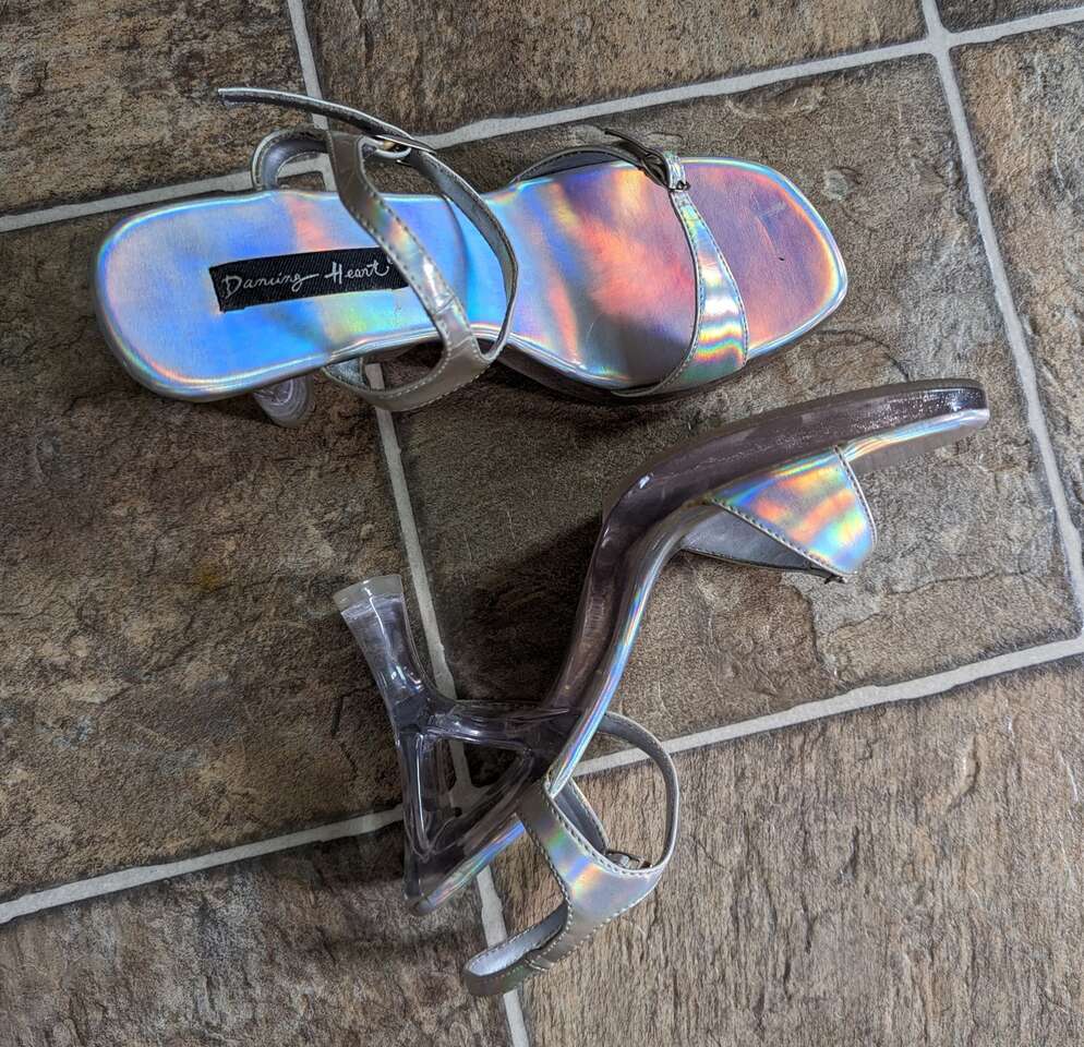 Holographic Iridescent Sandlas. Worn once