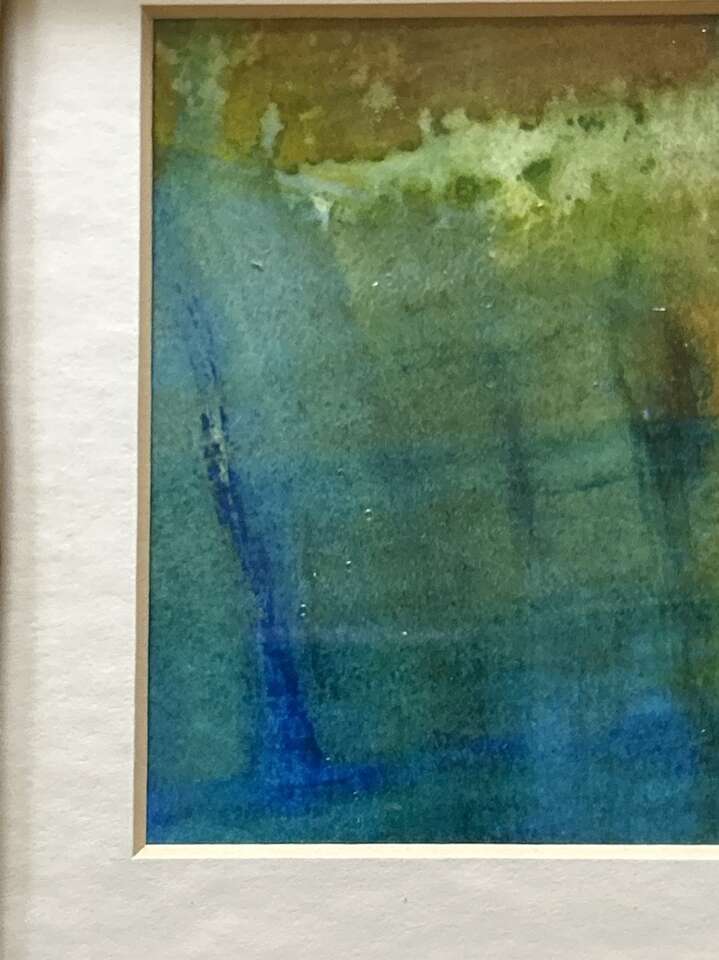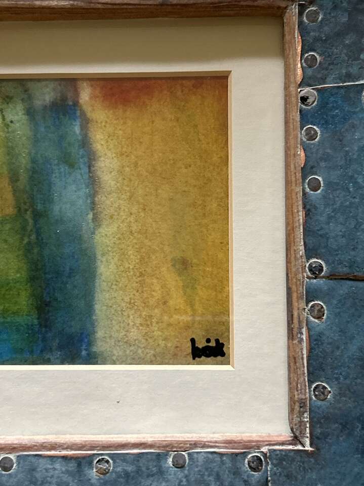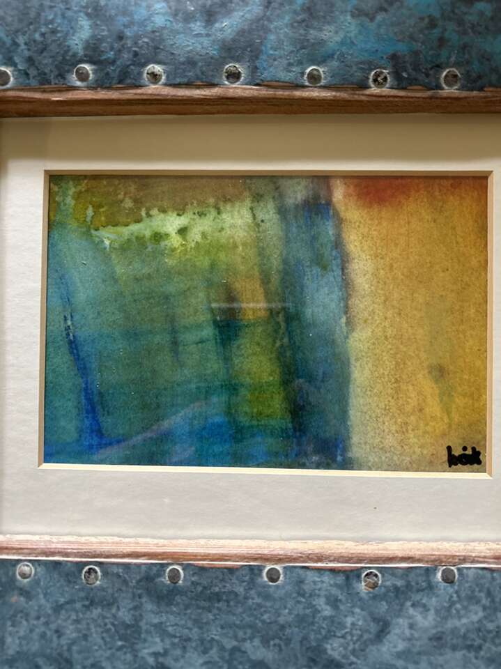 Original Modern Abstract painting in a very unique frame. Image size 4x6 inch.