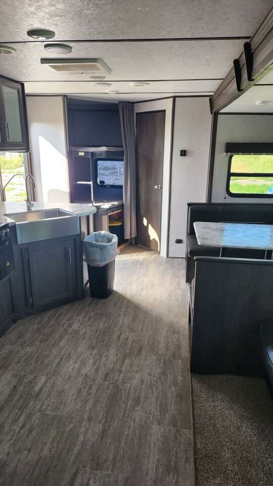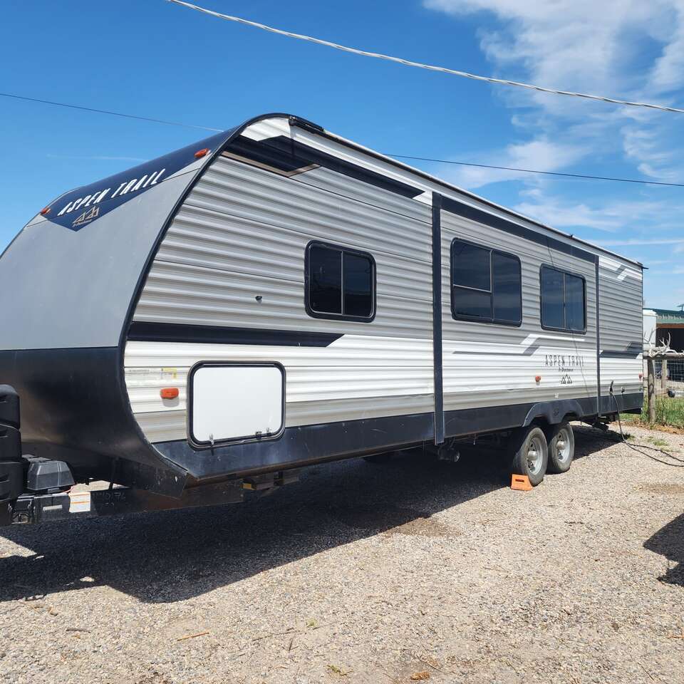 Has slide! Plenty of room Power awning, outdoor kitchen, outdoor storage, power stabilizers, power jack. Seperate bedroom, bunks, table and couch both fold into beds.