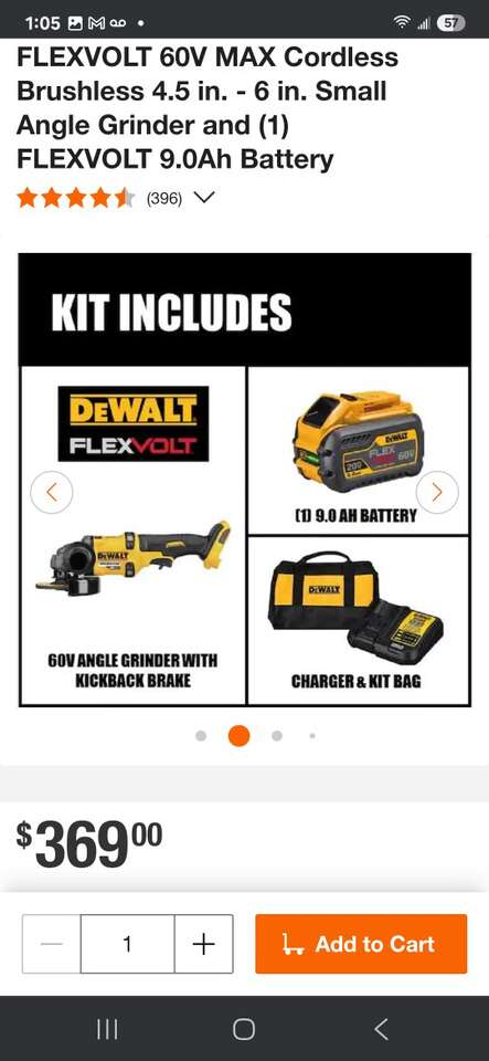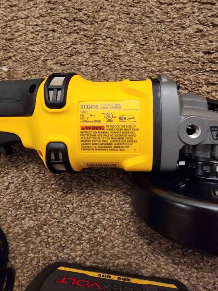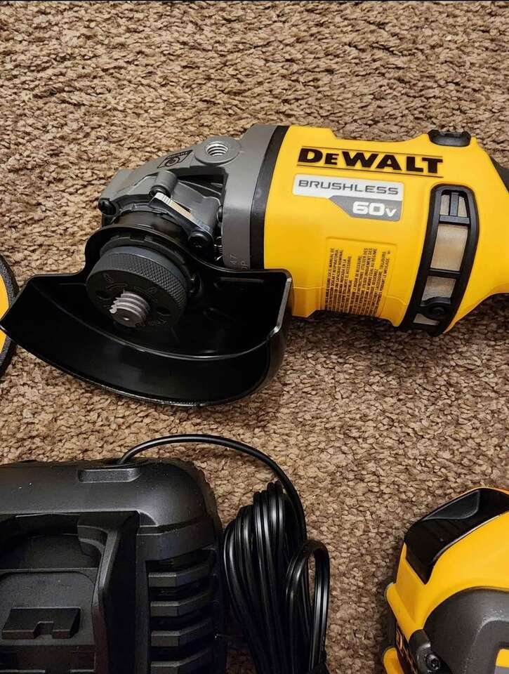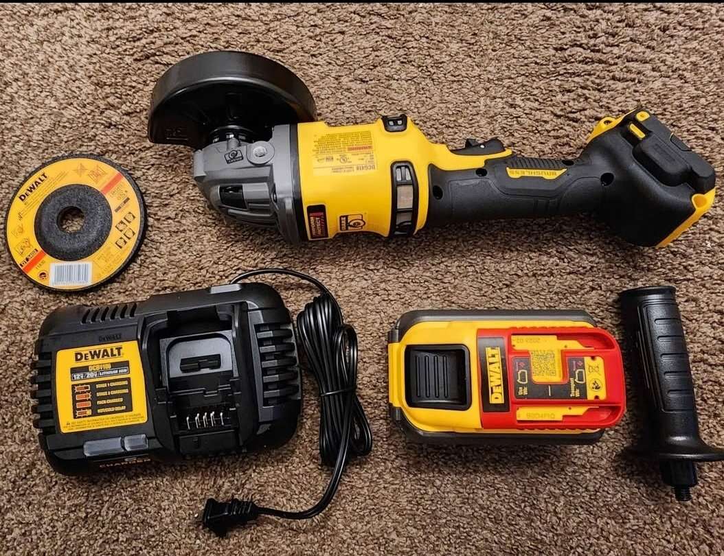 ZelleNew Dewalt FlexVolt 60V MAX Cordless Brushless 4.5in. - 6in. Small Angle Grinder kit. Includes one 9AH FlexVolt battery, charger, and bag. Model Number DCG418X1.