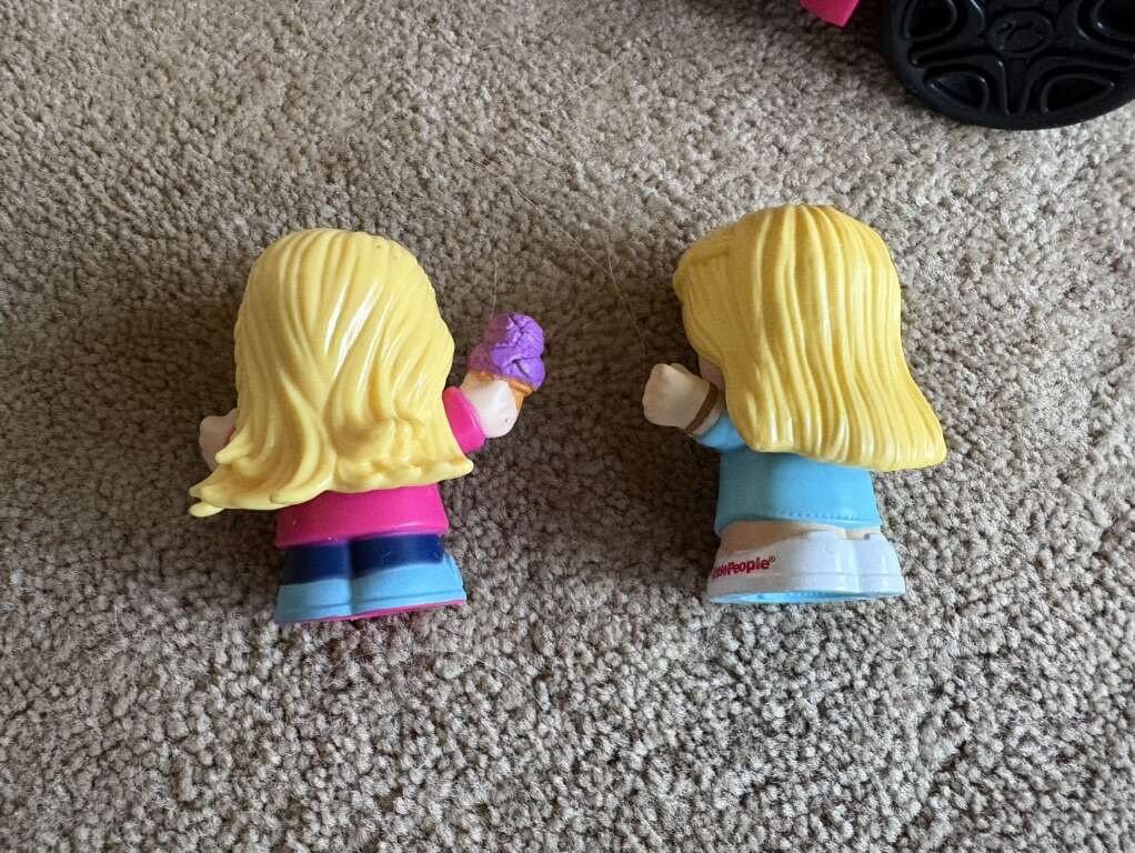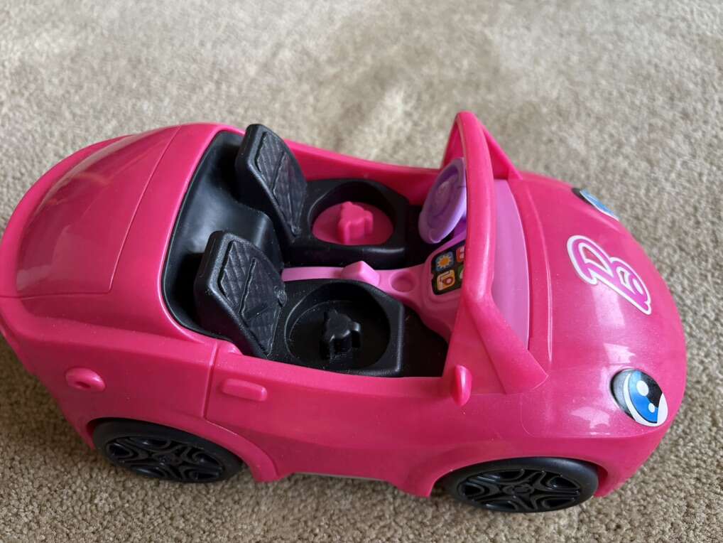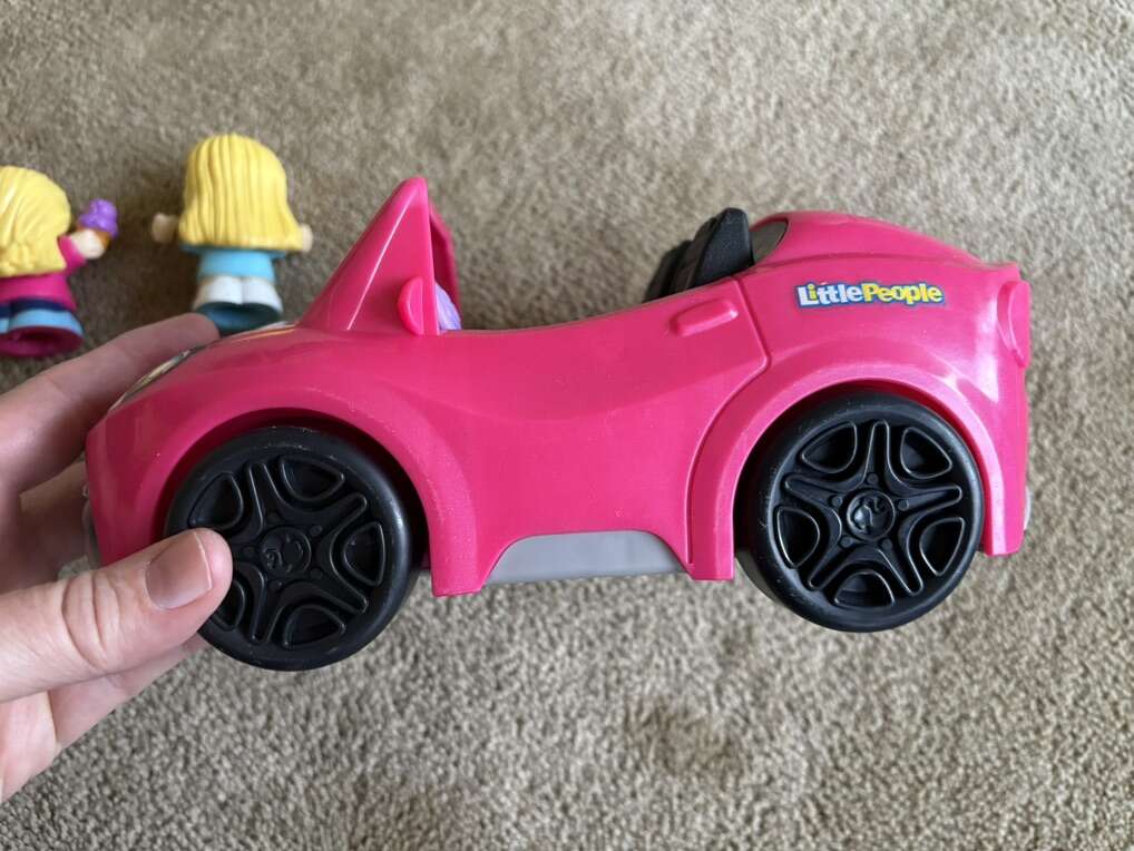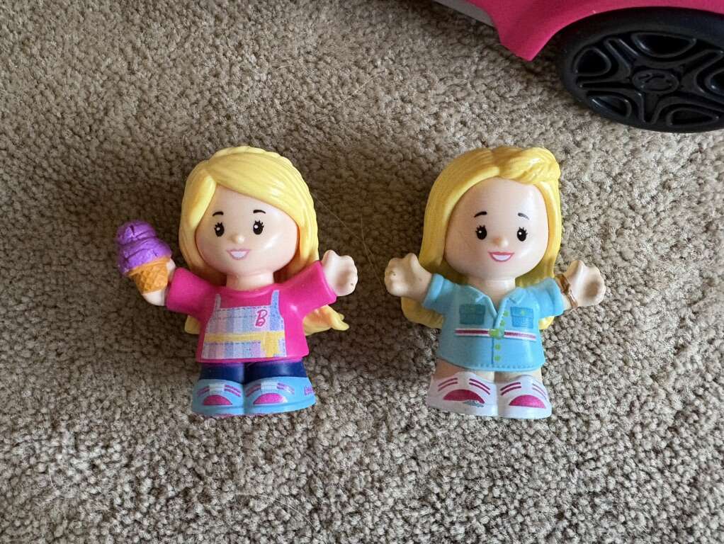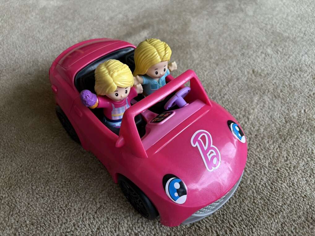 Fisher-Price Little People Barbie Convertible Push-Along Vehicle Set. Cute hot-pink car with two Barbie Little People figures. Excellent condition. Text only. Cash or Venmo.