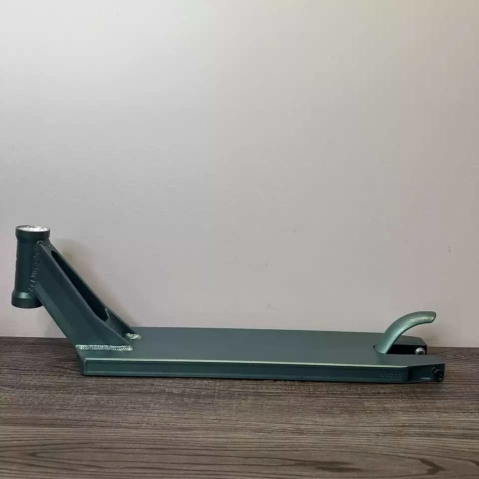ZelleIntroducing the District HTS+ Scooter Deck in Litmus, a high-quality addition to any kick scooter. This deck is made of durable aluminum and features angled dropouts and quad-rail extrusion for a secure and safe ride. Measuring 4.9" x 20.5", this deck is compatible with various kick scooters and is perfect for outdoor sports enthusiasts. The steel green color adds a stylish touch to your ride. At 125mm (4.9 ) wide, the HTS+ decks provide the perfect middle-ground for park riders wanting more foot-space without noticeably increasing the weight of their deck. The HTS+ decks feature the classic District quad-rail extrusion and angled dropouts. Features: Deck Length: 520mm / 20.47 inch Width: 125mm / 4.92 inch Headtube angle: 83