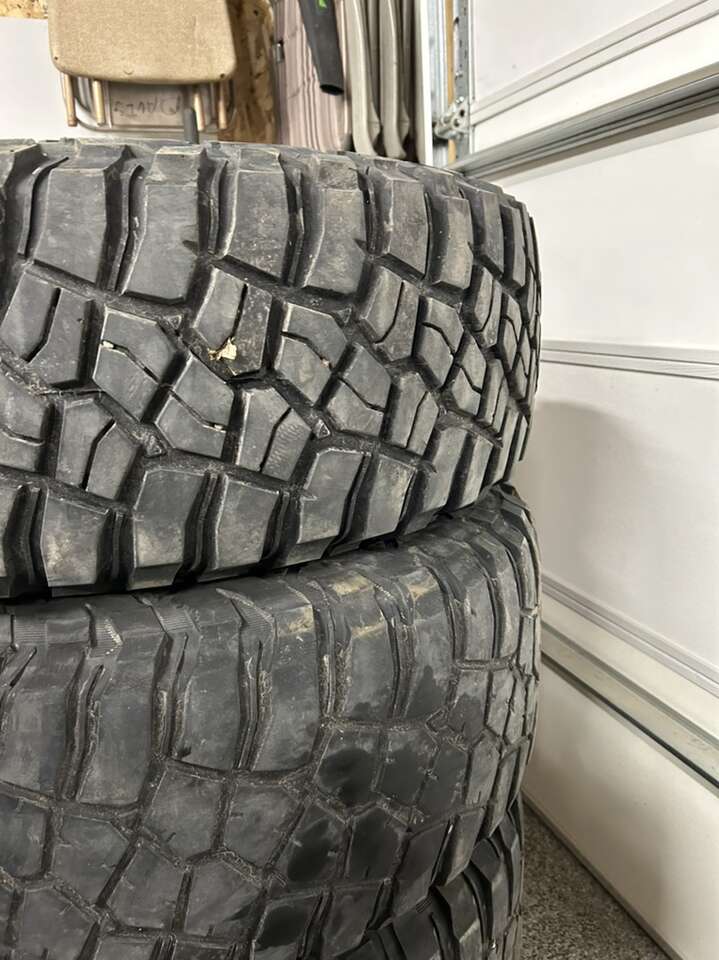 I am selling my used tires. They are bfg mud terrain tires, three are fairly wore and the fourth one is in really good shape.