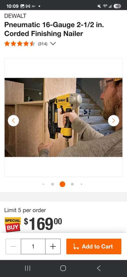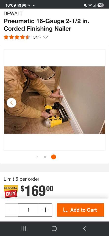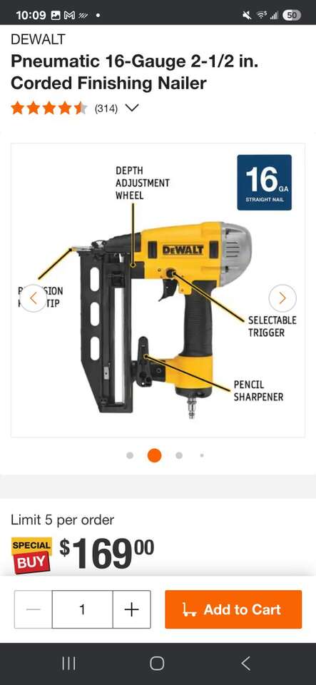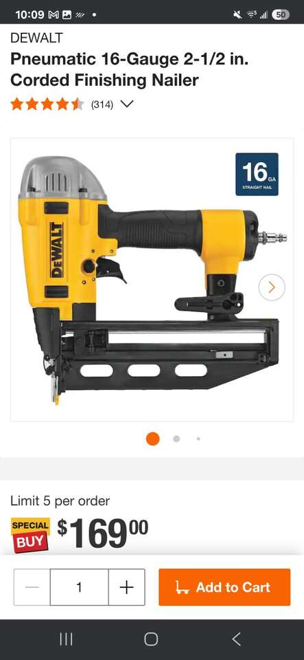 ZelleNew Dewalt Pneumatic 16-Gauge 2-1/2in. Corded Finish Nailer. Model Number DWFP71917