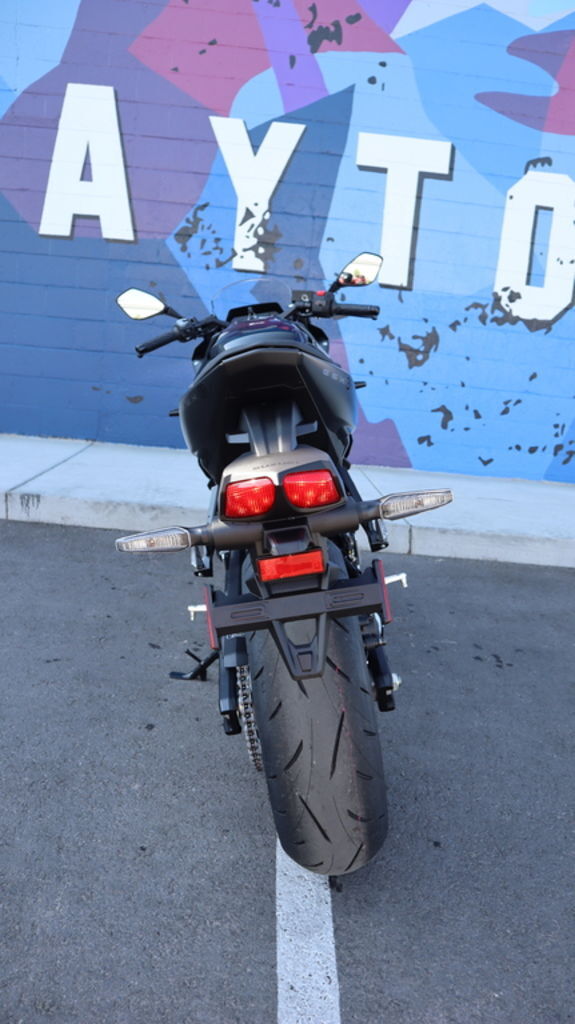 SHOWA SFF-BP front fork and rear shock tuned for a confident, sporty ride. Upright yet aggressive ergonomics offer excellent comfort and control.