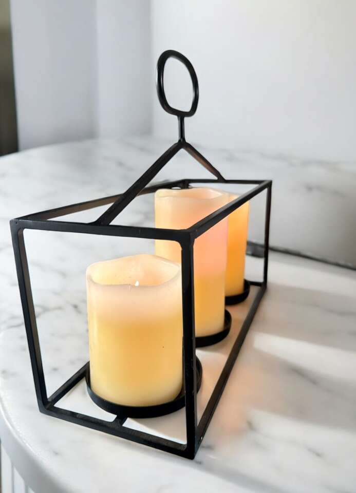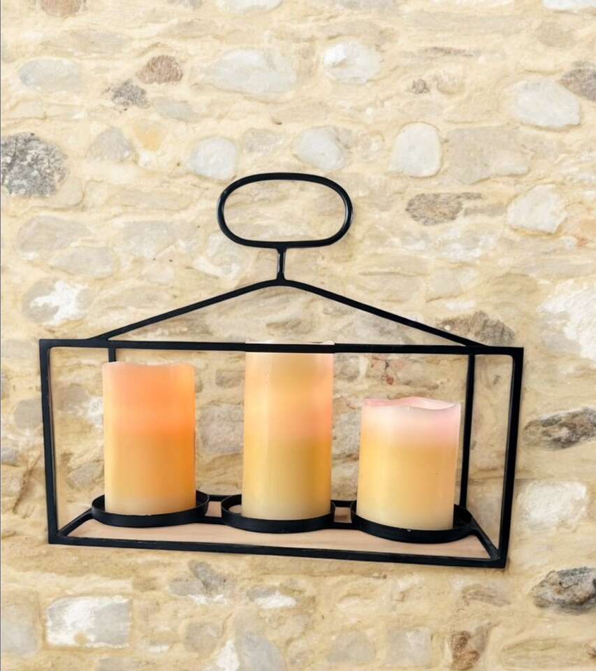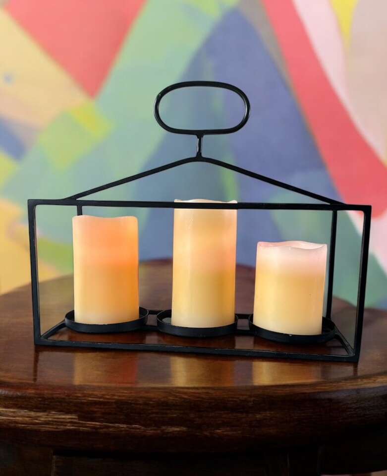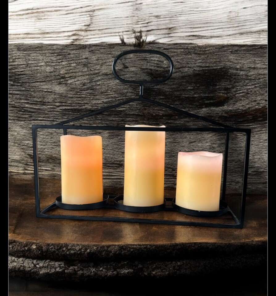 Sturdy construction welded joints. Candles not included. 13 inches long 11 inches tall.