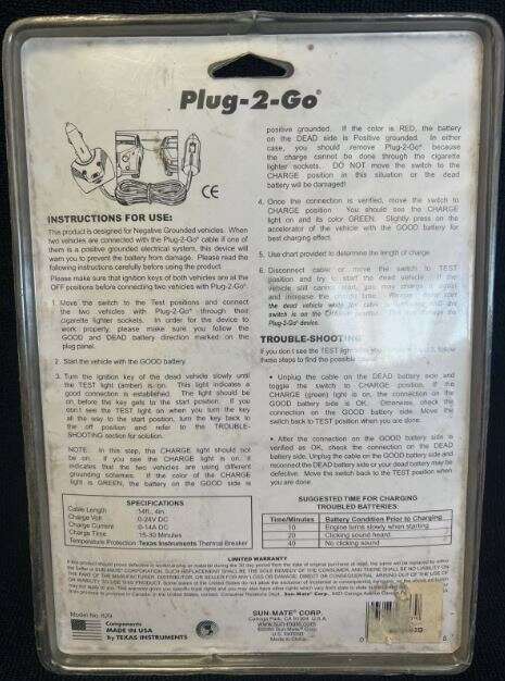 VenmoPlug 2 Go Car Battery Charger. Plug 'Dead Battery' into the cigarette port of vehicle needing charged. Plug 'Good' end into vehicle cigarette charger with running battery