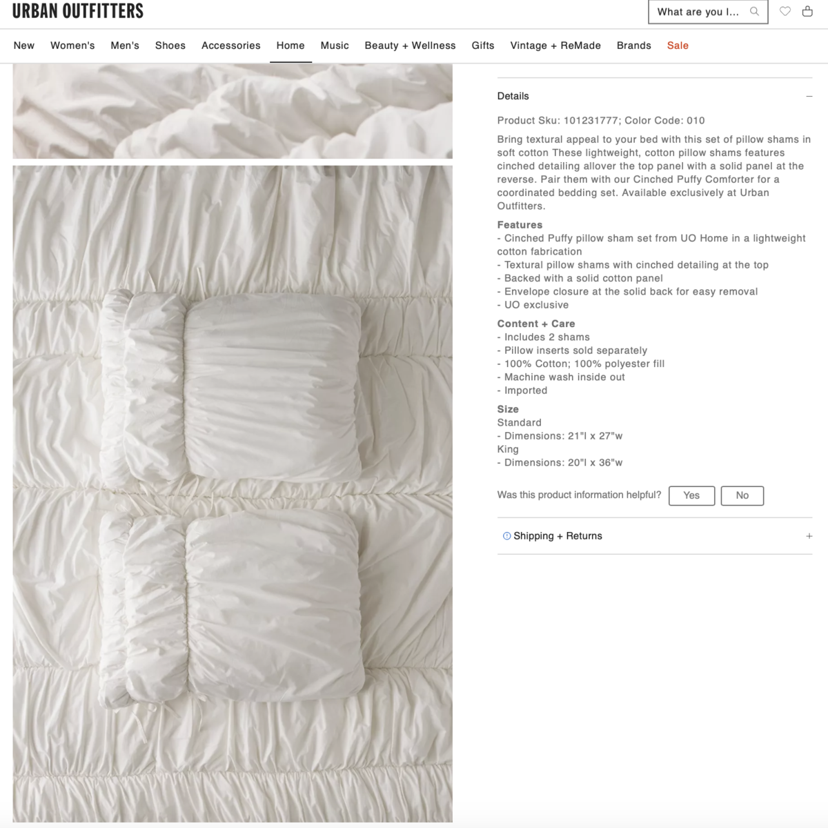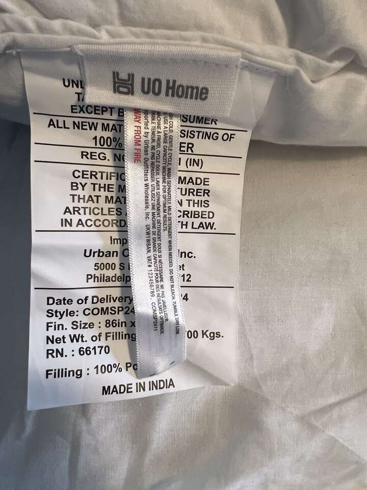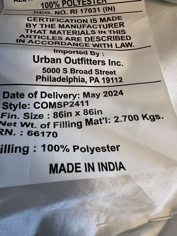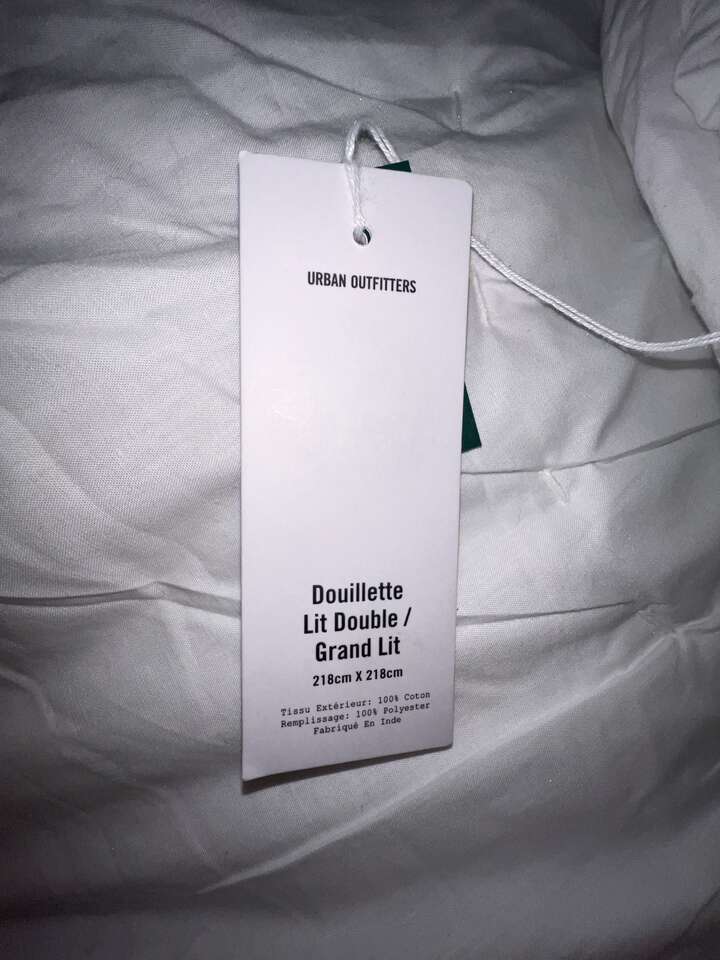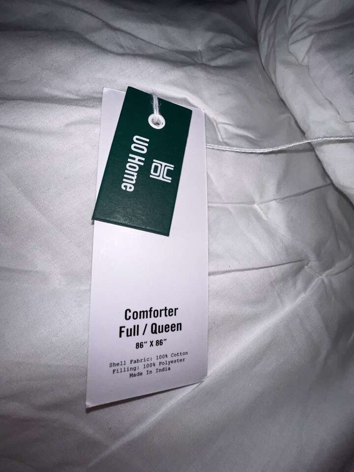 I bought this on Urban Outfitters hoping that it would fit my bed, but it is too small. It’s a Full/Queen, and I have a King size bed. I saved it for Christmas to give to my daughter, but she didn't want it. It also includes two new king sized pillow shams from Urban Outiftters that I bought to accent the comforter, but they are not quite as crisp white as they looked online. You can lighten them up as they are 100% cotton and won't yellow, if desired. (mix 1/4 cup bleach to each gallon of water used, and soak them for 10 minutes at a time to lighten them) I didn't do it because the set didn't fit my bed.