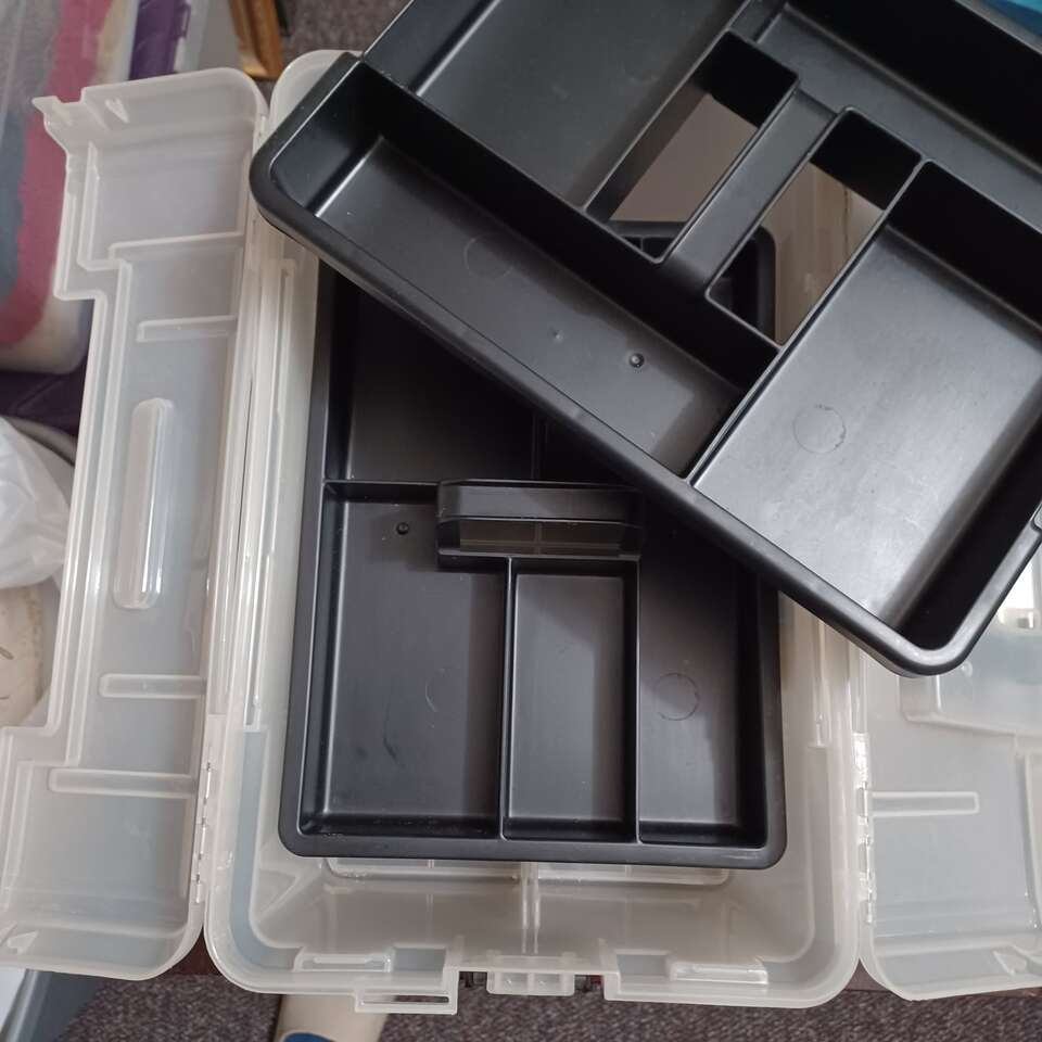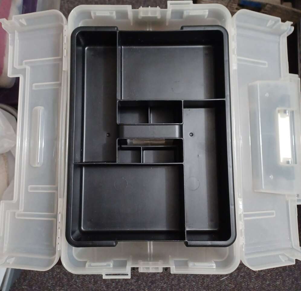 VenmoIRIS Hobby Box Clear plastic book with 2 black removable trays, latches and carry handle. Great for Art and Crafts Cosmetics First Aid Fish and Tackle Spare Tools