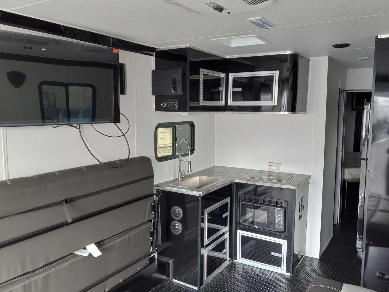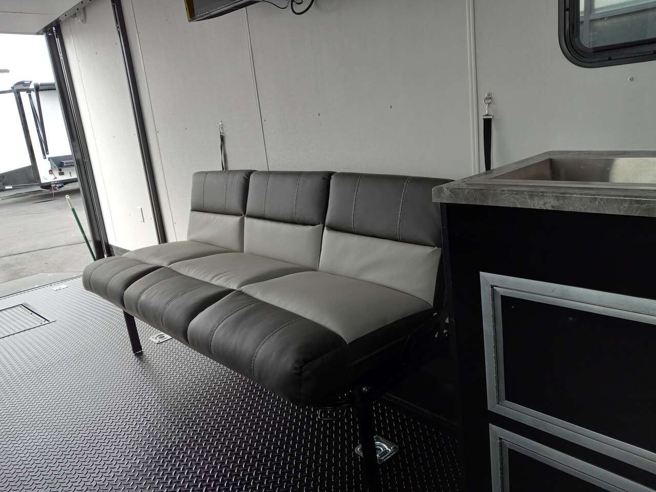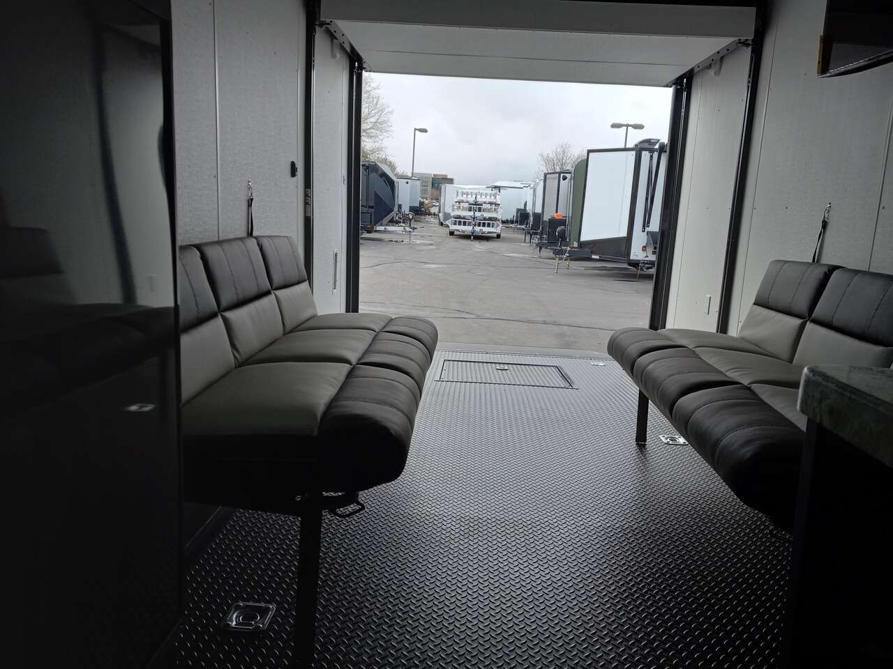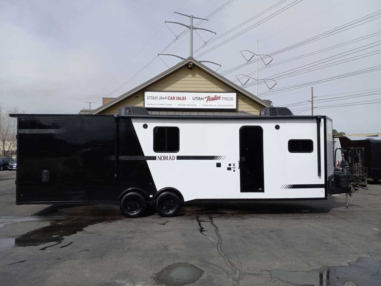 LIMITED TIME $498 A MONTH WITH ZERO DOWN WITH OUR SPECIAL LOCAL CREDIT UNION PARTNER!!! NO PRE-PAYMENT PENALTIES!!! NEW NOMAD 30QB MODEL!!! 30 GALLON FUEL STATION!!! WILL FIT ANY STOCK SIDE BY SIDE UTV!!! 14,000# GVWR/7k AXLES!!! FULLY INSULATED!!! HEATING AND 2x A/C's!!! STEREO!!! 7FT-6" Interior Height/ 36" Wedge Front -Platinum Package Includes: Deluxe Stereo Package with: AM/FM/CD/DVD/USB/MP3/WMA Capable Stereo, (4) Hi Output Weatherproof Speakers (2) Interior & (2) Exterior 43" TV w/swivel bracket Rear Hide-A-Screen Solar Port **_WELD**** 7FT-6" Interior Height/ 36" Wedge Front 2x8 Tube Steel Main Rails 16" O/C Floor Steel Tube Crossmembers 16" O/C Steel Tube Wall Studs 24" O/C Tube Steel Roof Bows 18" Extended Triple Tube A-Frame Lippert Torsion Axles w/32 Deg Down Start Angle 40" Spread Axles 7000# Axles w/ST235/80R16 Tires on TA5 Electric Brakes 2-5/16 Adjustable A-Frame Coupler 5000# Electric A-Frame Tongue Jack 4000# Rear Cableless Ramp Door w/Steel Flap (2) Roof Vent in Living/Garage Area (1) Prep & Wired for A/C - Main A/C only 12V Roof Vent in Bathroom Painted Tongue/Rear Sill Black (1) Pair Rear Stab Jacks Rear Flare w/(2) Loading Lights w/Switch 72" Beavertail **_PLUMBING**** 53 Gallon Fresh Water Tank (2) 43 Gallon Waste Holding Tank Sewer Hose Storage Compartment Double 20# LP Bottle w/Cover on A-Frame 6 Gallon DSI LP Gas/Electric Water Heater 12V Water Pump City/Gravity Water Fill Hook Up Outside Shower and RV Toilet Bathroom Mirror & Robe Hooks 24x36 Shower w/Shower Curtain & Surround Tank and Battery Monitor Panel **_ELECTRICAL**** 7-Way Electrical Plug LED Strip Taillights/Marker Lights 12V Deluxe LED Lighting 45 Amp RV Power Center w/12V Converter 30 Amp Motor base Plug Detachable Twist lock Power Cord Battery Box Only (Battery not included) (2) 110V GFI Receptacle in Kitchen Area 110V Receptacle in Garage Area 110V Exterior GFI Receptacle Dual USB Ports in Kitchen 6 Cubic Foot Refrigerator (RH) Microwave Oven Below Stove Top 35K BTU Furnace TV Prep Package - Includes: Coax Cable Outlets - Interior & Exterior Omnidirectional TV Antenna UHF/VHF (3) 12V 40" LED Cove Lights in Living/Garage Area Smoke, CO, & LP Detector & Fire Extinguisher ***_INTERIOR**__3/4" Drymax Floor & 3/8" White Vinyl Walls Polystyrene Foam Insulation - Walls & Ceiling ATP Rubber Floor Covering White Vinyl Ceiling Liner w/Black Cove Molding Black Kitchen L-Base Cabinet w/Laminate C-Top Black Kitchen L-Overhead Cabinet (4) 5000# Recessed D-Rings Outside Storage (1) Pair Black Aluminum Directional Sidewall Vents *__ROOF**** Seamless Aluminum Flat Top Roof LED Marker Lights Rear Flare w/(2) Loading Lights **METAL*.080 Screwless Armor Shield Composite Skin STD Colors: Crystal White, Black, Matte Black Windstar Silver, Victory Red, Pewter, Charcoal 3" Heavy Duty Flat Top Trim 3" Flat Bottom Trim & 6" Barrier Tape All Black Exterior Trim & ATP Fenders 24" Tall Slanted Diamond Plate Stone guard 24" Tall Diamond Plate along sides at bottom (1) Pair Black Aluminum Directional Sidewall Vents*****DOORS & WINDOWS****26W x 78H Radius Corner Deluxe RV Door w/Window & Screen Aluminum Door Holdback Double Fold Out RV Step 4000# Rear Cableless Ramp Door w/Steel Flap All Black Zinc Coated Door Hardware 24Wx72H Door w/Barlock in Front Storage 30x15 Window in Kitchen Area 30x30 Window in Living/Garage Area 30x22 Egress Window in Bedroom Area 30x15 Window in Bedroom Area Window Coverings - In Garage Area (Only) ****FINAL***** LED Strip Taillights/Marker Lights 12V Deluxe LED Lightning Black Aluminum Wheels w/Radial Tires & Black Center Caps Recessed Spare Tire Compartment Limited 3 Year Structural Warranty ***Platinum Package: PKG Includes: Deluxe Stereo Package with:AM/FM/CD/DVD/USB/MP3/WMA Capable