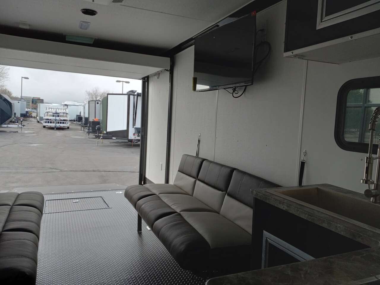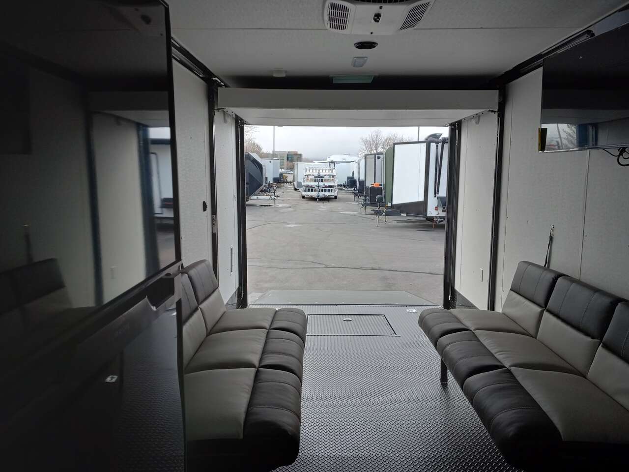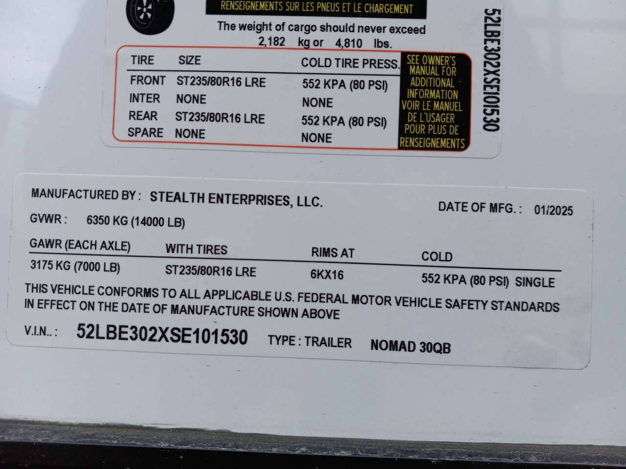 LIMITED TIME $498 A MONTH WITH ZERO DOWN WITH OUR SPECIAL LOCAL CREDIT UNION PARTNER!!! NO PRE-PAYMENT PENALTIES!!! NEW NOMAD 30QB MODEL!!! 30 GALLON FUEL STATION!!! WILL FIT ANY STOCK SIDE BY SIDE UTV!!! 14,000# GVWR/7k AXLES!!! FULLY INSULATED!!! HEATING AND 2x A/C's!!! STEREO!!! 7FT-6" Interior Height/ 36" Wedge Front -Platinum Package Includes: Deluxe Stereo Package with: AM/FM/CD/DVD/USB/MP3/WMA Capable Stereo, (4) Hi Output Weatherproof Speakers (2) Interior & (2) Exterior 43" TV w/swivel bracket Rear Hide-A-Screen Solar Port **__WELD**** 7FT-6" Interior Height/ 36" Wedge Front 2x8 Tube Steel Main Rails 16" O/C Floor Steel Tube Crossmembers 16" O/C Steel Tube Wall Studs 24" O/C Tube Steel Roof Bows 18" Extended Triple Tube A-Frame Lippert Torsion Axles w/32 Deg Down Start Angle 40" Spread Axles 7000# Axles w/ST235/80R16 Tires on TA5 Electric Brakes 2-5/16 Adjustable A-Frame Coupler 5000# Electric A-Frame Tongue Jack 4000# Rear Cableless Ramp Door w/Steel Flap (2) Roof Vent in Living/Garage Area (1) Prep & Wired for A/C - Main A/C only 12V Roof Vent in Bathroom Painted Tongue/Rear Sill Black (1) Pair Rear Stab Jacks Rear Flare w/(2) Loading Lights w/Switch 72" Beavertail **__PLUMBING**** 53 Gallon Fresh Water Tank (2) 43 Gallon Waste Holding Tank Sewer Hose Storage Compartment Double 20# LP Bottle w/Cover on A-Frame 6 Gallon DSI LP Gas/Electric Water Heater 12V Water Pump City/Gravity Water Fill Hook Up Outside Shower and RV Toilet Bathroom Mirror & Robe Hooks 24x36 Shower w/Shower Curtain & Surround Tank and Battery Monitor Panel **__ELECTRICAL**** 7-Way Electrical Plug LED Strip Taillights/Marker Lights 12V Deluxe LED Lighting 45 Amp RV Power Center w/12V Converter 30 Amp Motor base Plug Detachable Twist lock Power Cord Battery Box Only (Battery not included) (2) 110V GFI Receptacle in Kitchen Area 110V Receptacle in Garage Area 110V Exterior GFI Receptacle Dual USB Ports in Kitchen 6 Cubic Foot Refrigerator (RH) Microwave Oven Below Stove Top 35K BTU Furnace TV Prep Package - Includes: Coax Cable Outlets - Interior & Exterior Omnidirectional TV Antenna UHF/VHF (3) 12V 40" LED Cove Lights in Living/Garage Area Smoke, CO, & LP Detector & Fire Extinguisher **__INTERIOR*__*3/4" Drymax Floor & 3/8" White Vinyl Walls Polystyrene Foam Insulation - Walls & Ceiling ATP Rubber Floor Covering White Vinyl Ceiling Liner w/Black Cove Molding Black Kitchen L-Base Cabinet w/Laminate C-Top Black Kitchen L-Overhead Cabinet (4) 5000# Recessed D-Rings Outside Storage (1) Pair Black Aluminum Directional Sidewall Vents *__ROOF**** Seamless Aluminum Flat Top Roof LED Marker Lights Rear Flare w/(2) Loading Lights ****METAL****.080 Screwless Armor Shield Composite Skin STD Colors: Crystal White, Black, Matte Black Windstar Silver, Victory Red, Pewter, Charcoal 3" Heavy Duty Flat Top Trim 3" Flat Bottom Trim & 6" Barrier Tape All Black Exterior Trim & ATP Fenders 24" Tall Slanted Diamond Plate Stone guard 24" Tall Diamond Plate along sides at bottom (1) Pair Black Aluminum Directional Sidewall Vents*****DOORS & WINDOWS****26W x 78H Radius Corner Deluxe RV Door w/Window & Screen Aluminum Door Holdback Double Fold Out RV Step 4000# Rear Cableless Ramp Door w/Steel Flap All Black Zinc Coated Door Hardware 24Wx72H Door w/Barlock in Front Storage 30x15 Window in Kitchen Area 30x30 Window in Living/Garage Area 30x22 Egress Window in Bedroom Area 30x15 Window in Bedroom Area Window Coverings - In Garage Area (Only) ****FINAL***** LED Strip Taillights/Marker Lights 12V Deluxe LED Lightning Black Aluminum Wheels w/Radial Tires & Black Center Caps Recessed Spare Tire Compartment Limited 3 Year Structural Warranty ***Platinum Package: PKG Includes: Deluxe Stereo Package with:AM/FM/CD/DVD/USB/MP3/WMA Capable STOCK #SE101530