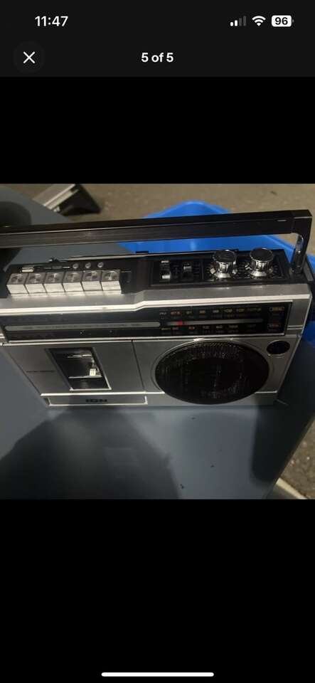 This boombox model, the Street Rocker, also features an AM/FM radio, allowing you to listen to your favorite radio stations. Whether you're at home or on-the-go, this portable boombox is the perfect companion for any music enthusiast. Get your hands on this iconic boombox and rock out to your favorite jams!