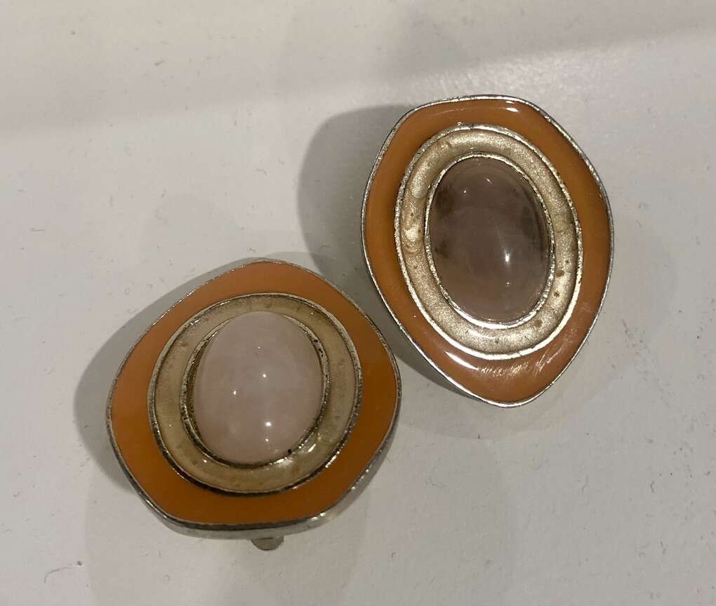 Vintage CELIA SABIRI AVON Rose Quartz Peach & Cream Earrings