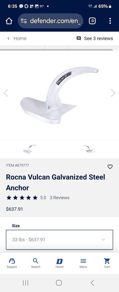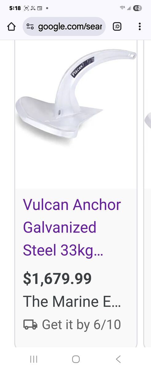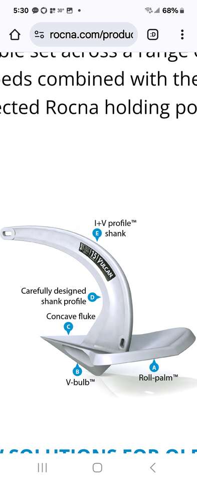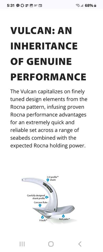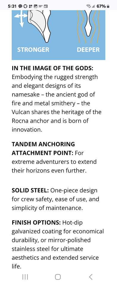 New Rocna Vulcan Galvanized Steel Anchor it is 73 lb.