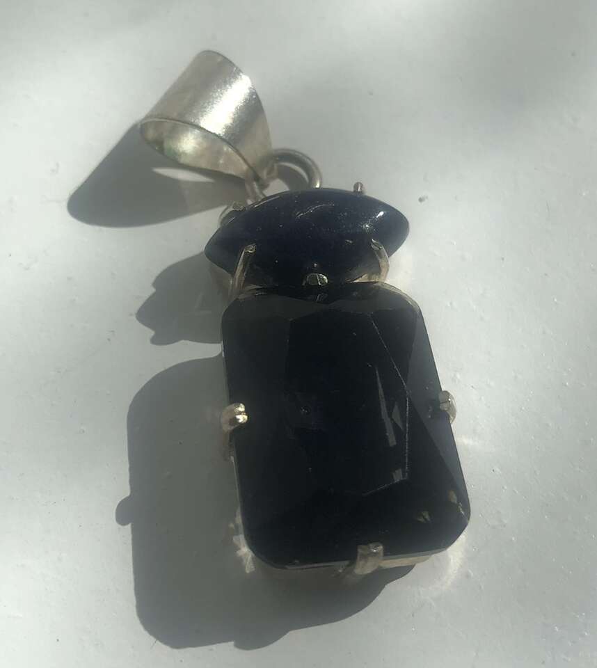 LAPIS/SMOKY QUARTZ STERLING SILVER PENDANT