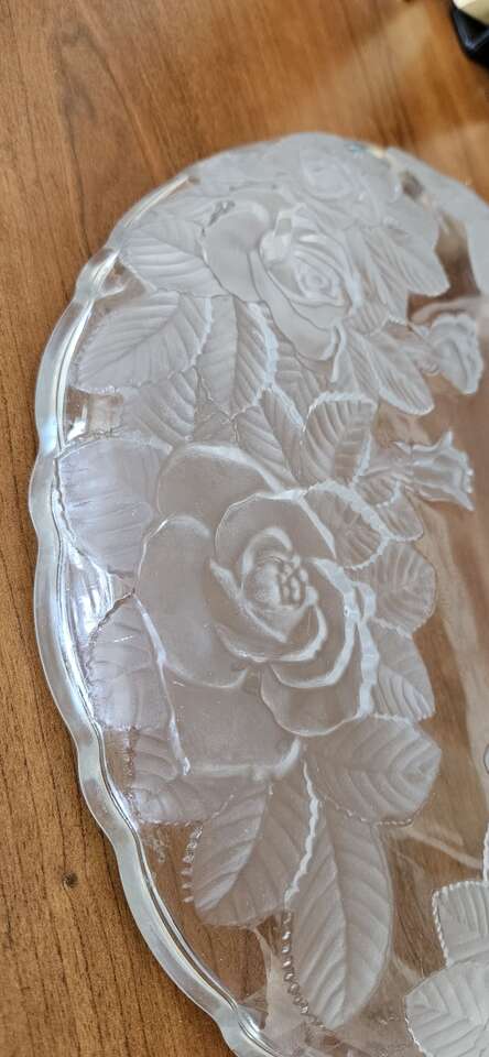 I've actually never used this, just loved how beautiful it was. 14-in diameter, one and a half inches high. Time to let go!