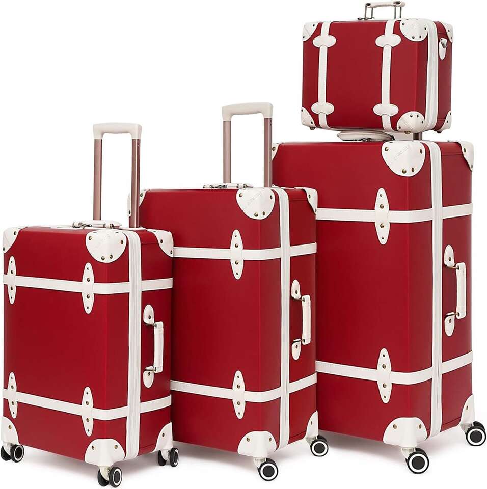 Title: NZBZ Vintage Handmade Luggage Sets for Women 4 Pieces, PU Leather Retro Suitcase Set, Vintage Trunk Luggage (Cherry Red, 14+20+24+28)