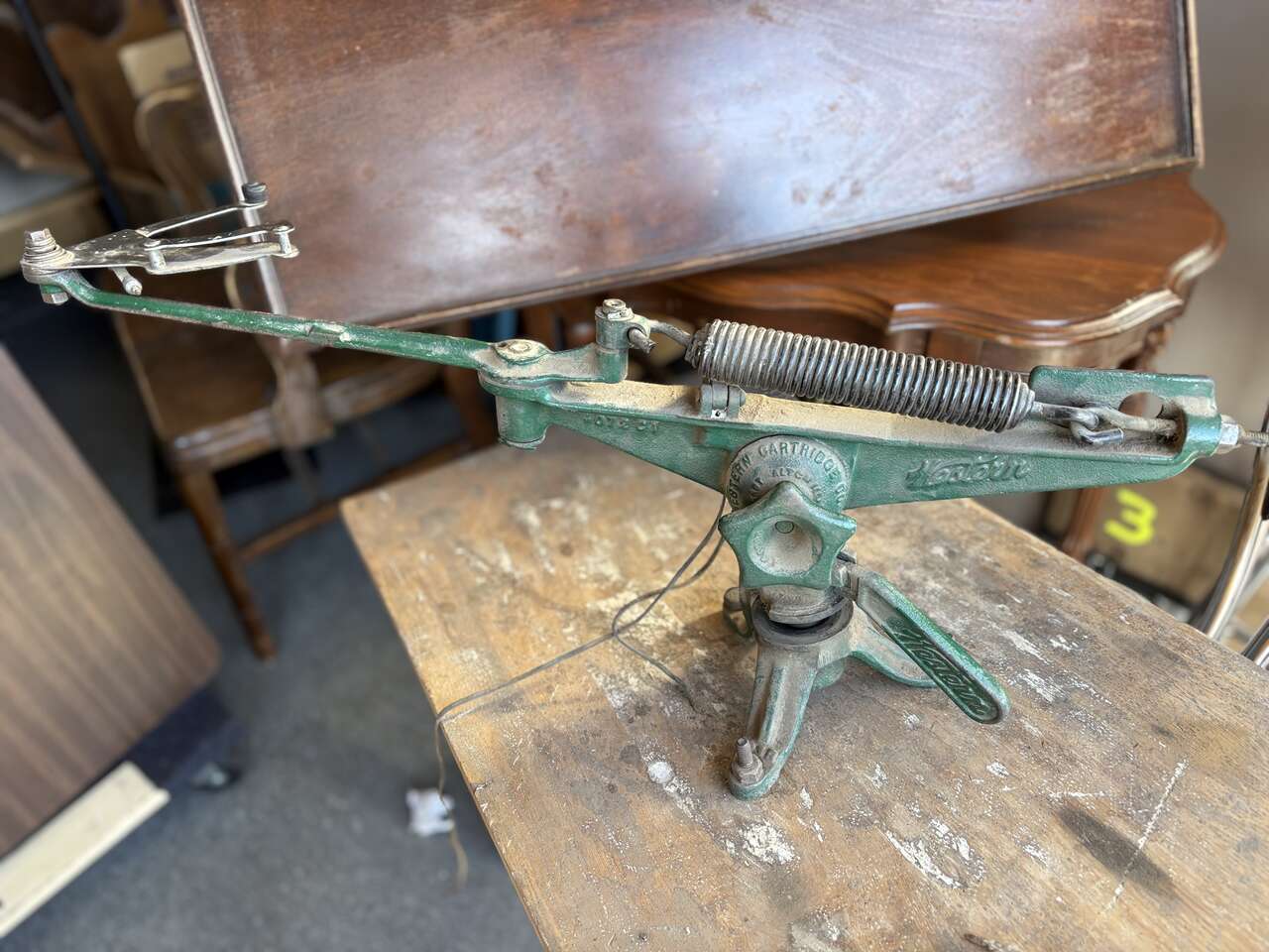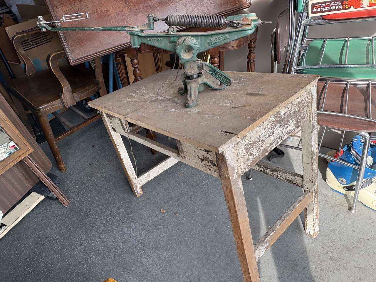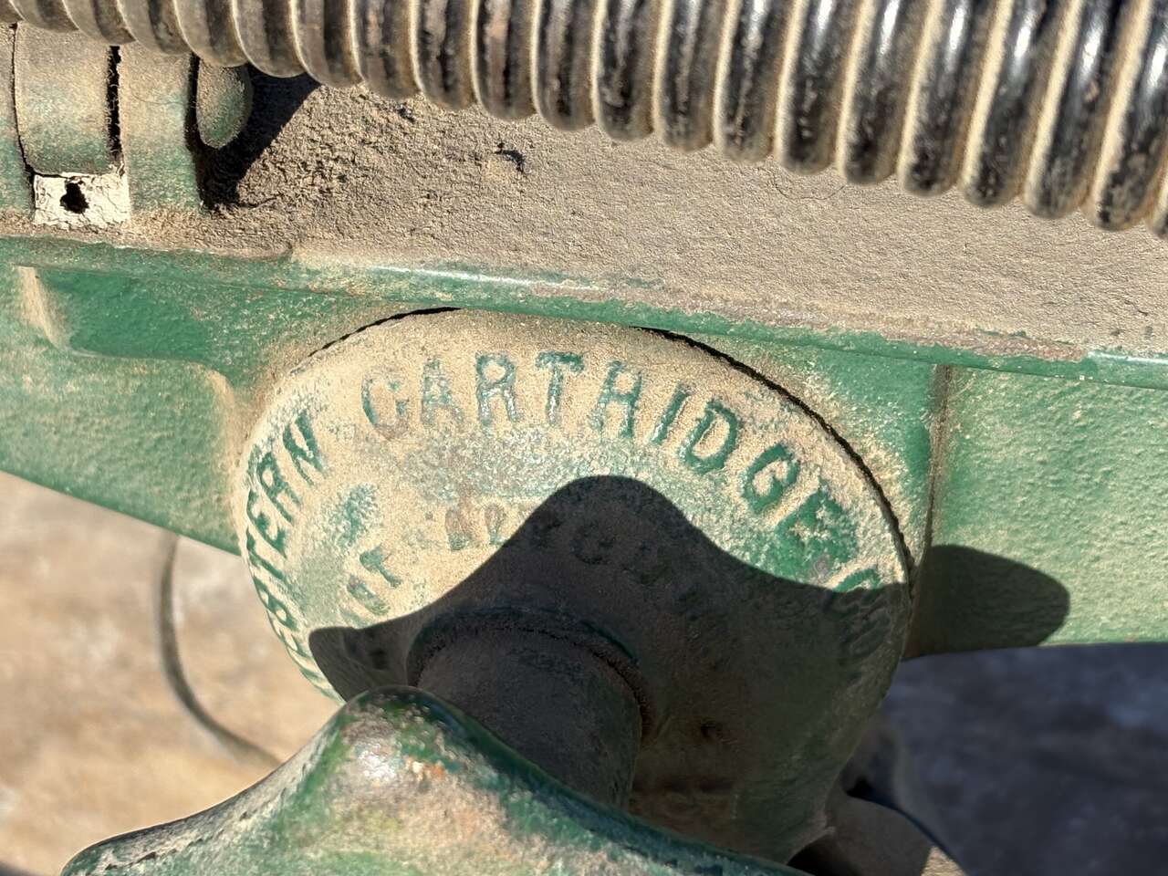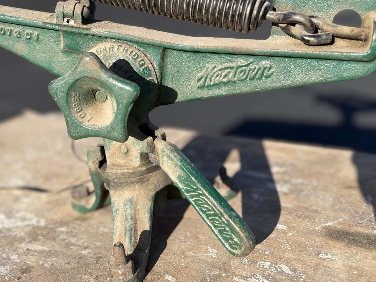 VenmoWestern brand, clay pigeon skeet target shooting.mounted on an antique wooden table which is included if you want the table. I haven't cleaned any of the dust off of it- but the paint is in great condition for its age and it'll look amazing all cleaned up- and it looks pretty awesome with as is
