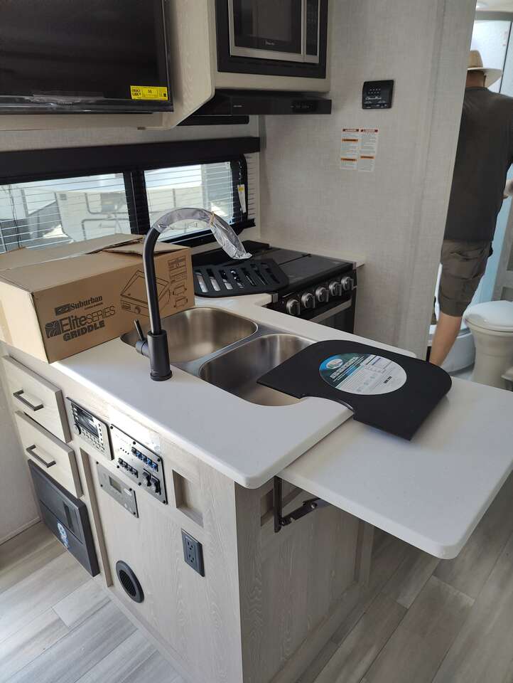 2022, 2104s mini lite, perfect condition,2 brand new lithium batteries, generator, portable pellet stove, canopy, upgrade kitchen sink, upgrade bathroom sink, solar on roof ,extra portable solar panel,sway bar set,a lot of extras,save money,been stored covered.murfy bed.WINTERIZED!