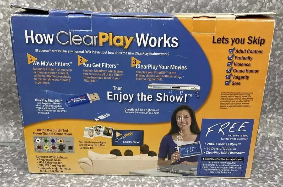CashAppClearPlay CP-427B-USB DVD Player + Remote FILTER Language Obscenity Violence