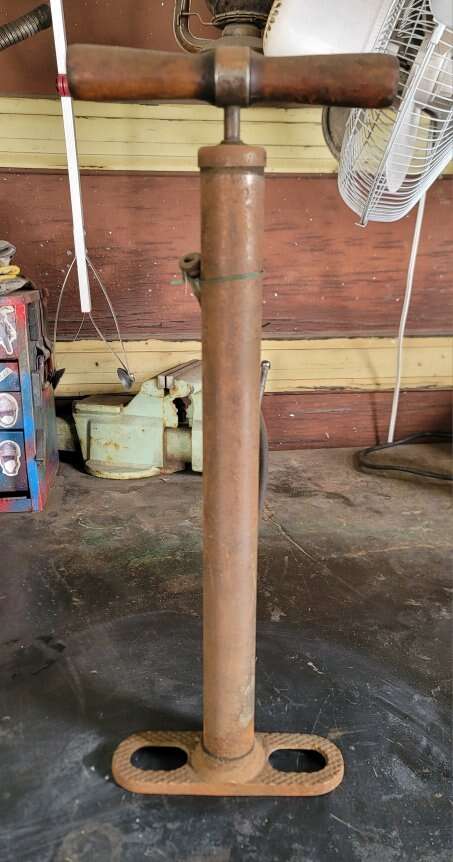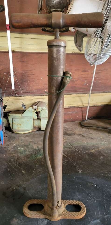 Antique bike pump no dents no chips in wood. Needs new packing
