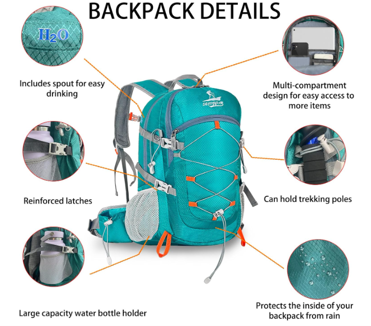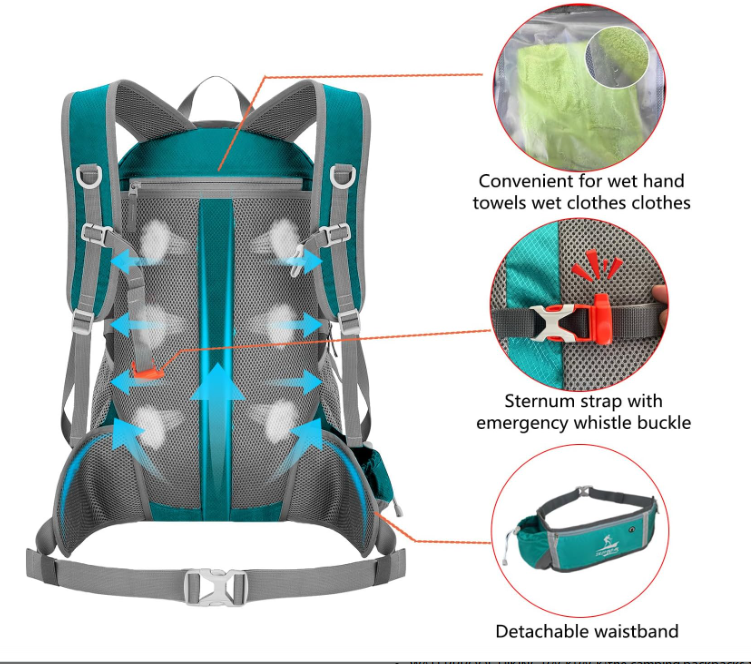 40L HIKING BACKPACK: this hiking backpack 40L comes with two main compartments, front pocket, rear wet pocket, two side pockets and a detachable waist pack for ample storage and moisture protection, as a Large hiking backpack,the backpacks for hiking can be folded for easy packing and weighs just As a backpack for hiking,hiking backpack for men can be folded for easy packing and weighs only 1.4 pounds, (18.7 inches x 12.4 inches x 10.4 inches)