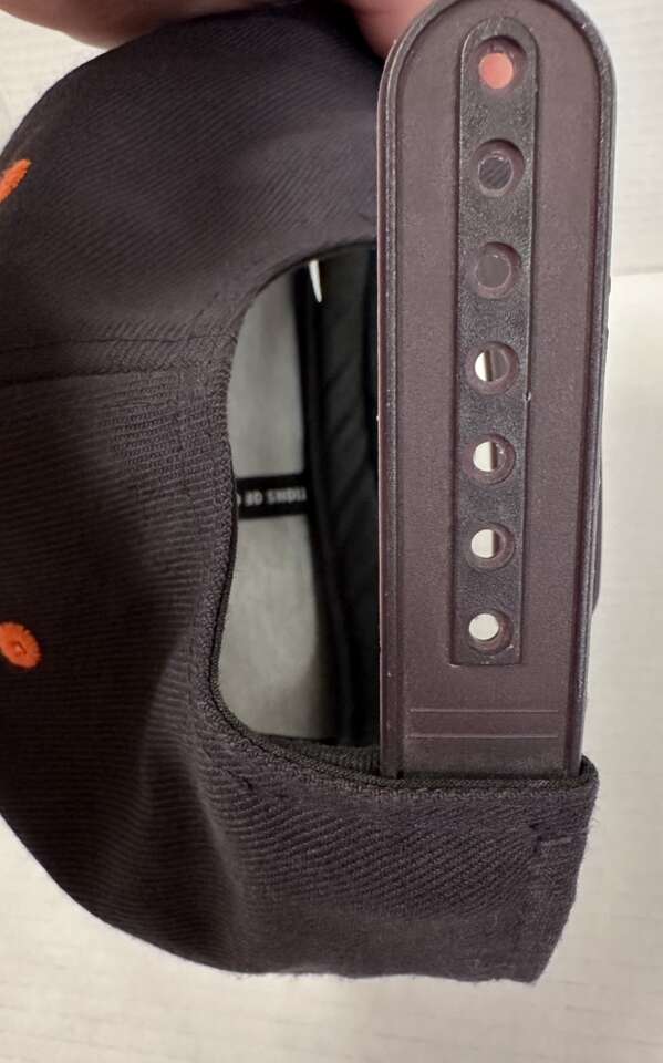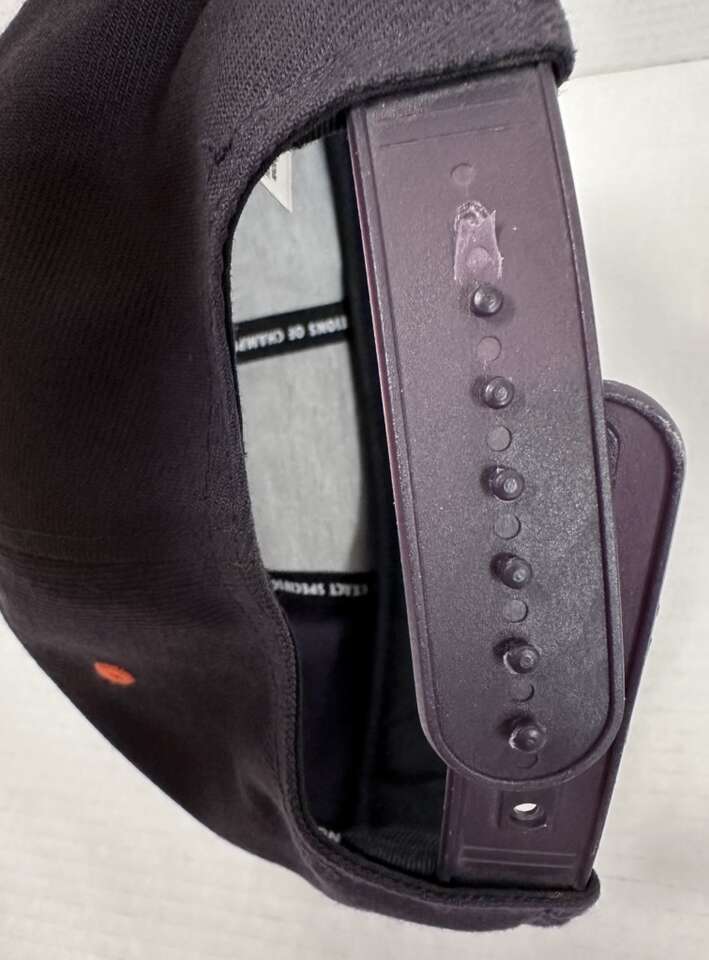 Hat is pre-owned, please review all pictures. I have included a picture of the strapback, it is missing 1 hole at the end for closure. Doesn’t affect the look of the hat.