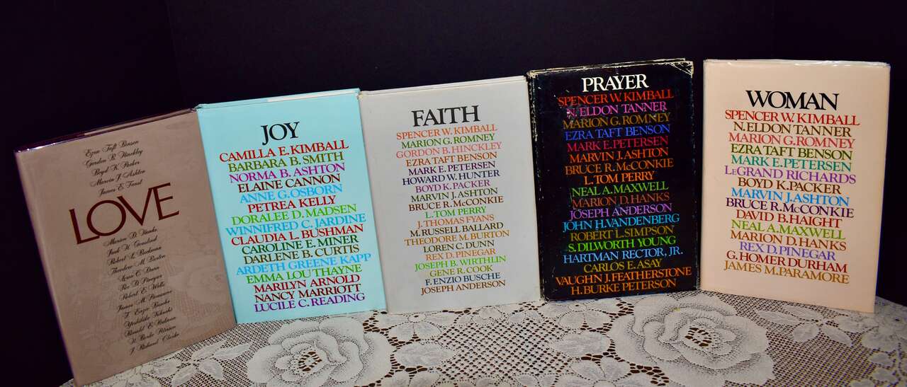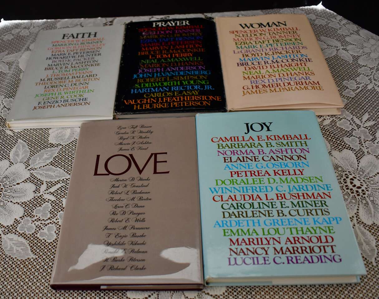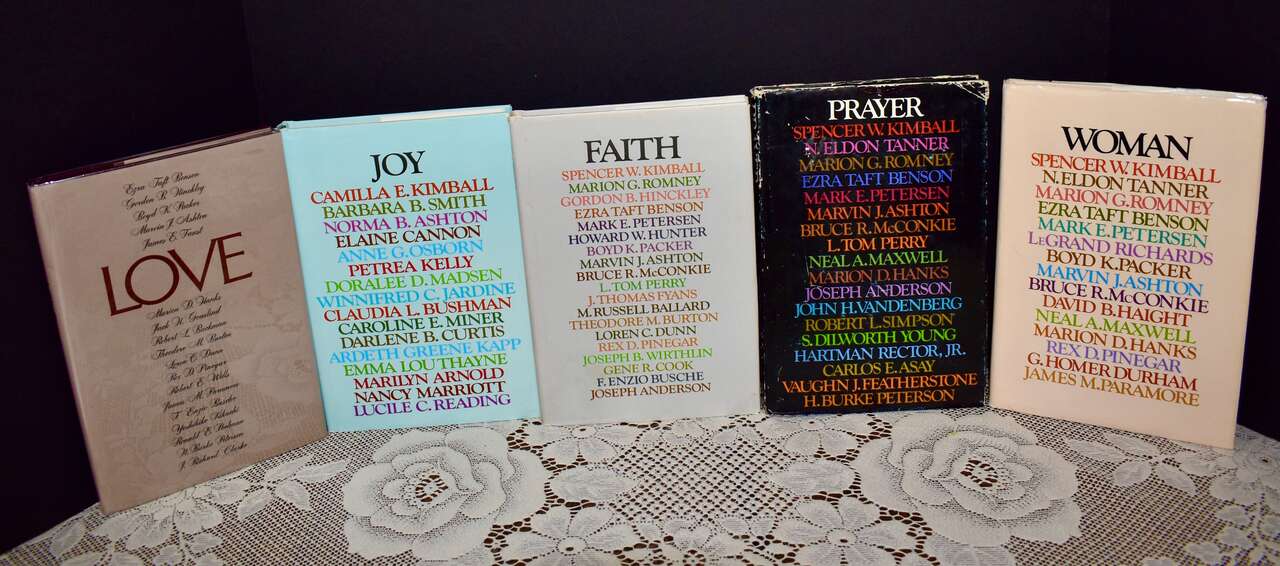 A Set of 5 Really Great Books- FAITH, WOMAN, JOY, PRAYER, LOVE- With Stories and Information from Various Leaders of The LDS Church. One of them as a very nice plastic mylar covering.