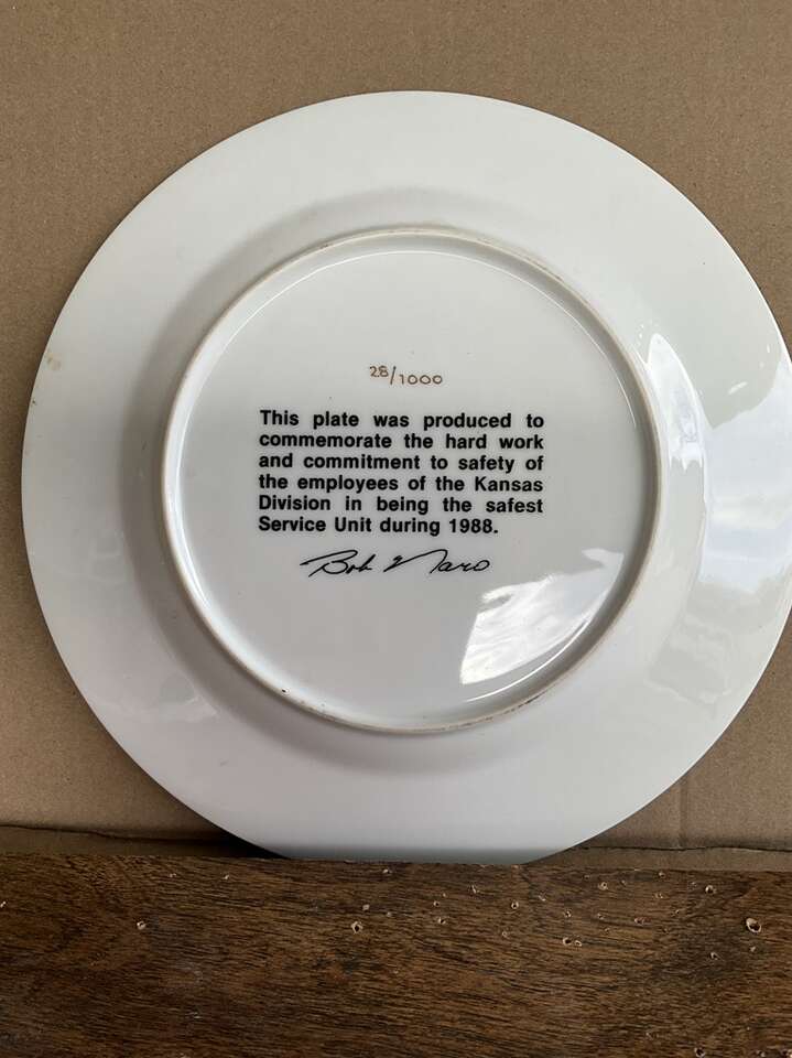 Union Pacific 1988 commemorative plate issued for excellence in safety. This was awarded to the Kansas Division. This plate is numbered #28 out of 1,000 total produced.