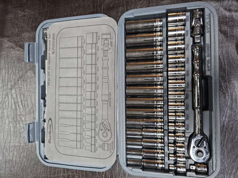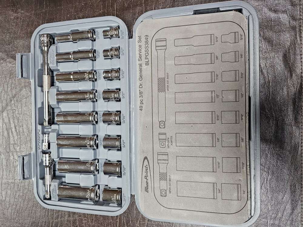 VenmoBlue-Point 49 Piece service set 3/8" drive Sockets, ratchet and extensions retails at 365$ purchased from snap On dealer, lightly used set, like new