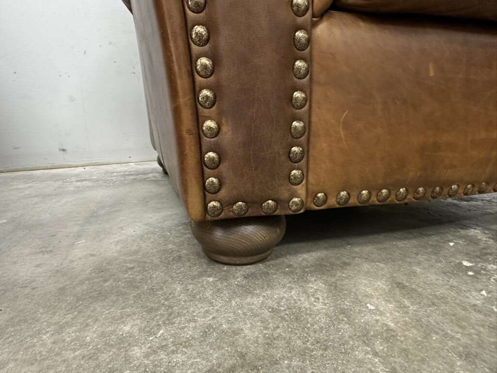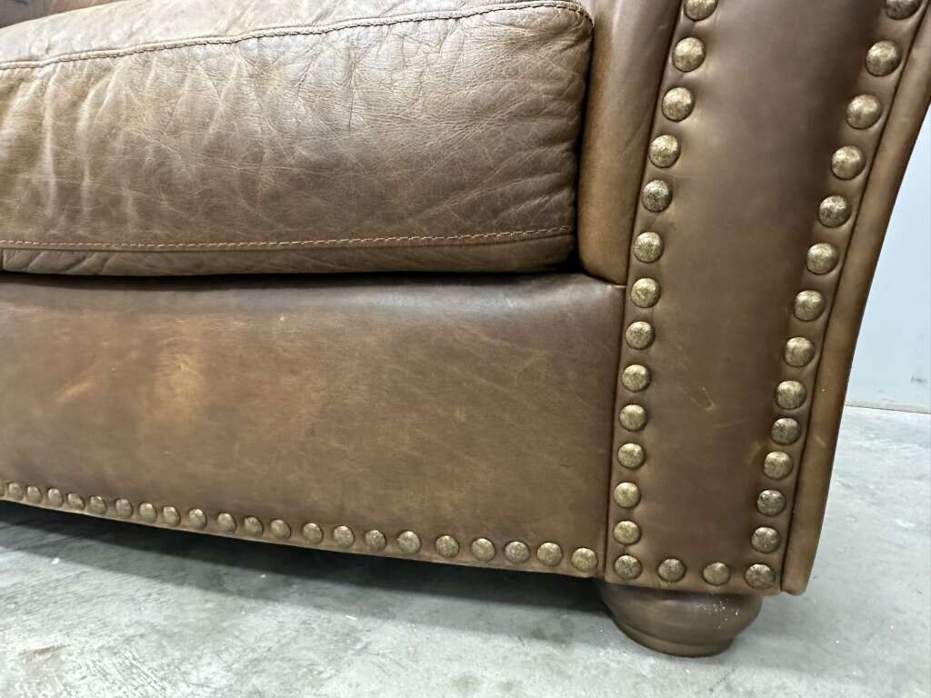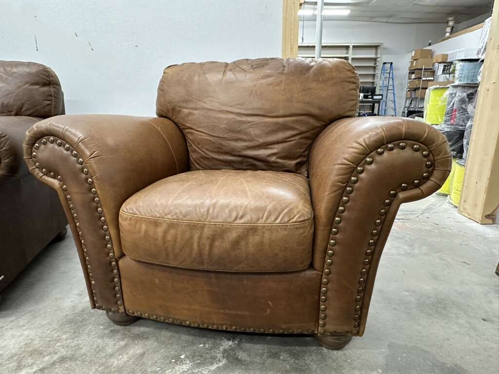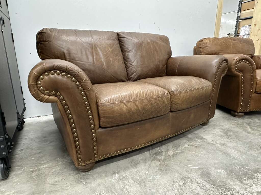 VenmoHigh End from the Italian brand Natuzzi. All Top Grain real leather everywhere and super comfortable. Wood feet.