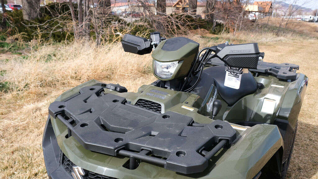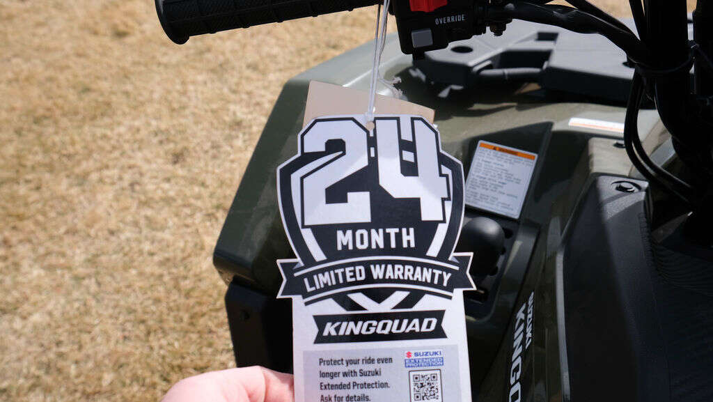 2025 Suzuki KingQuad 750AXiChassisSuzuki, the inventor of the 4-wheel ATV, has created the world's best sports-utility quad with bold styling plus more capability and reliability than ever before. The legacy of the iconic KingQuad remains fresh and exciting, and is ready for you to join its history. The 2025 KingQuad 750AXi helps tackle challenging terrain with the capabilities that only a KingQuad possesses.Features may include:EngineThe 722cc, DOHC, single-cylinder, liquid-cooled, four-stroke engine delivers strong low- to mid-range torque and impressive peak horsepower. The four-valve cylinder head has large 36mm intake valves and straight ports for superb cylinder charging efficiency. A sportbike-derived chain-and-gear camshaft drive system helps create a compact engine.TransmissionThe Quadmatic™ CVT-type automatic transmission provides versatility and convenience with a fender-mounted gate-type shifter for high/low range selection. Its advanced engine-braking system minimizes free-wheeling with the throttle off to help reduce speed when riding downhill.ChassisIndependent double A-arm front suspension (6.7 inches of wheel travel) and the fully independent, A-arm/I-beam rear suspension (7.7 inches of wheel travel) use four large diameter, gas-charged shock absorbers with five-way spring preload adjustment.ElectricalThe multi-function instrument panel has excellent appearance and visibility and provides service reminders based on running time or mileage. The instrumentation includes LCD readouts for the speedometer, odometer, twin trip meter, hour meter, clock, fuel level, riding range, and drive mode. There are LED indicators for high, low, neutral, reverse, 2WD/4WD, and differential-locked 4WD and LED cautions for fuel injection and engine temperature.Body & StylingAvailable in Flame Red or Terra Green, the bold, angular bodywork features high-clearance fenders that offer great protection for the rider. Refined panels simplify maintenance needs, such as oil level checks and fuel and air filter service.AdditionalA variety of Genuine Suzuki Accessories are available, including winches, windshield, front and rear bumpers, quick-release snowplow, aluminum skid pans, rack extensions, utility box, and more.