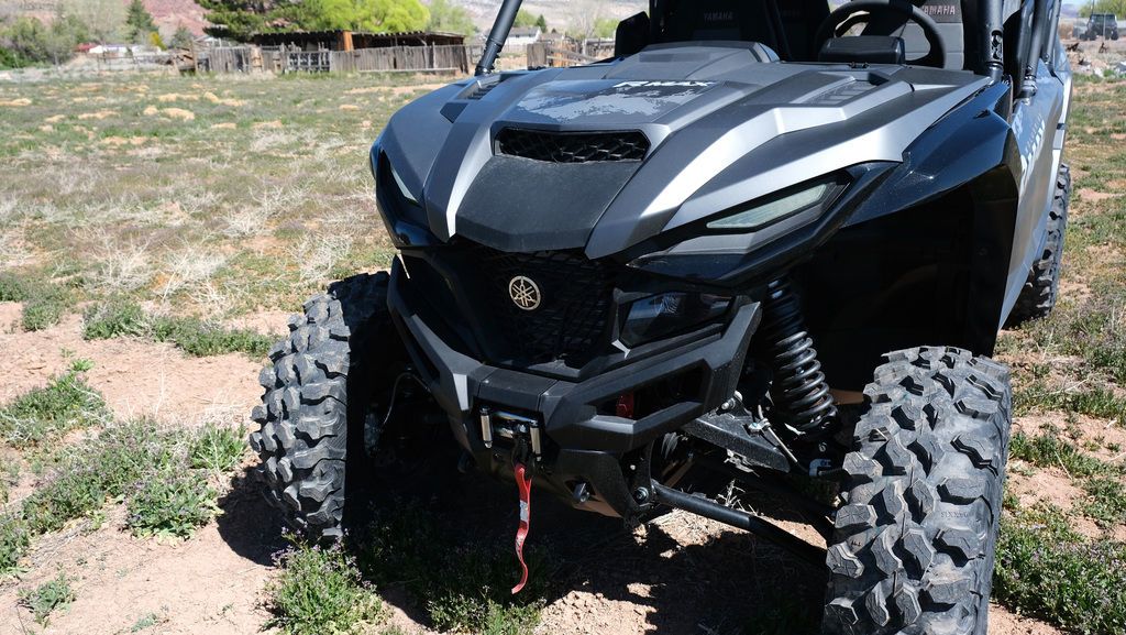 STOCK NUMBER: 1049 2025 Yamaha Wolverine RMAX4 1000 XT-ROFF-ROAD GAMECHANGER WITH ROOM FOR FOURClass-leading ground clearance, class-leading suspension travel and more confidence for tackling rough, rocky terrain—the all-new Wolverine RMAX4 1000 XT-R is here to raise the game in the Recreational Side-by-Side class.Features may include:CAPABILITYPowerful 999cc Parallel Twin EngineThe Wolverine RMAX4 1000 XT-R delivers thrilling power and smooth performance thanks to its potent 999cc DOHC eight-valve parallel-twin engine, featuring legendary Yamaha reliability.Terrain-Tackling ChassisFor maximum terrainability, the Wolverine RMAX4 1000 XT-R features a solid, durable frame designed to provide superior off-road confidence. Class-leading suspension, 30-inch tires and an optimized wheel base provide a balanced contact-to-ground feel in challenging terrain.Excellent Braking SystemThe Wolverine RMAX4 1000 XT-R's advanced braking system provides exceptional power, better feel and quieter operation for added confidence when attacking the trail.COMFORTNext Level ComfortThe new Wolverine RMAX4 1000 XT-R maximizes passenger comfort with full length rear doors and substantially more rear passenger space including an impressive 47% (7.5 inches) more forward leg room and 40% (5.8 inches) more side-to-side leg room when compared to previous RMAX4 models. There is also thicker, softer new knee pad material, smooth front seat backs, inset rear door speakers and new premium grab handles creating a plush, roomy interior for long days on the trail.Automotive-Inspired CockpitFrom charging your electronics with a powered USB port, to seeing what's behind with the easily adjustable center-mount rearview mirror, to the high-quality automotive-inspired cockpit, the Wolverine RMAX4 1000 XT-R features amenities to make every ride comfortable.Interior LightingFor accessibility in low-light conditions, the Wolverine RMAX4 1000 XT-R features an interior light package to easily navigate controls. The blue LED lighted switches, floor lights and console lighting complement the automotive-inspired cockpit and are color-matched to the blue-backlit meter for a high-quality feel and premium look.CONFIDENCETerrain-Tackling ChassisFor maximum terrainability, the Wolverine RMAX4 1000 XT-R features a solid, durable frame designed to provide superior off-road confidence. Class-leading suspension, 30-inch tires and an optimized wheel base provide a balanced contact-to-ground feel in challenging terrain.Excellent Braking SystemThe Wolverine RMAX4 1000 XT-R's advanced braking system provides exceptional power, better feel and quieter operation for added confidence when attacking the trail.Premium Front BumperA multi-piece front bumper gives the Wolverine RMAX4 1000 XT-R a stylish look. With two welded steel trailering tie-down points, factory-installed WARN® VRX 45 winch, accessory brush guard and accessory pod light-mounting brackets, you'll confidently be able to take on the toughest terrain.
