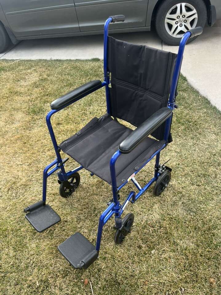 Material Aluminum Lightweight Folding Wheelchair: Compact and easy to push, our ultra-lightweight folding wheelchairs for adults weigh just 19 pounds and offer comfortable mobility with a 19-inch seat, padded armrests, and swing-away footrests Portable Wheelchair: Our transport chairs for seniors are lightweight and fold with ease; aluminum-casted release hinge allows the back to fold down for easy storage and transport Comfortable Support: Enhanced with nylon upholstery, our ultralight wheelchairs also feature tool-free, height-adjustable footrests for comfortable and dependable support Durable Design: This rolling wheelchair is made of an aluminum frame that is durable and strong; portable wheelchair's composite 8-inch wheels are lightweight and maintenance-free Dimensions: Folded: 33 inches in length x 22 inches in width x 39. inches in height; seat: 19 inches in width x 16 inches in depth; armrest: 8 inches in height; weight capacity: 300 lbs