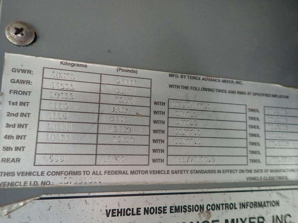 2011 Terex FDB6000 Front Discharge Mixer Truck,