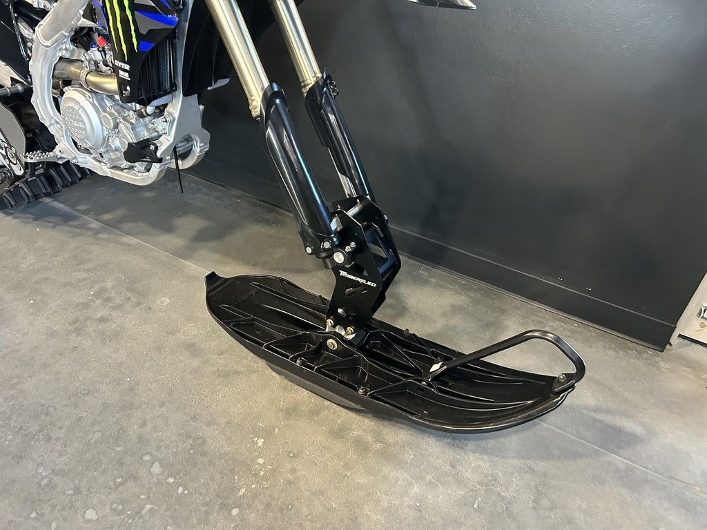 This bad boy Timber Sled build was done right! This ARO 137 Premium is paired to a 2025 YZ450F and has all the necessary goodies to go along with it. Bike has Moose Racing hand guards with Moose gauntlet, Timber Sled coolant heated handlebar, Timber Sled thermostat, Mad House 6" LED light, fuel catty system, and Timber Sled tunnel storage bag. This thing is ready to RIPPP! 2023 Timbersled ARO 137 PremiumUltimate Deep Snow FlotationFor the Deepest Snow and Steepest ClimbsThe Timbersled ARO 137 Premium is built for riders who live to break the trail on waist-deep days. With our longest track in the lineup, It takes you up the steepest sidehills with confidence.Balance & PrecisionThe state-of-the-art Timbersled ARO platform combines the Timbersled Traverse Ski and Timbersled Traverse Track with an aluminum chassis for precise handling and improved deep snow lift.Easiest to OwnTimbersled is backed by the world leader in powersports: Polaris. With the advanced engineering and design capabilities of Polaris, Timbersled's are an easily converted, low maintenance snow bike system. The direct bolt-on design means no bike or air box modifications, with pre-bled brakes making it easier.Timbersled ToughStrong where it needs to be and light where it can be, the Timbersled ARO is the top choice of athletes and extreme backcountry riders. The aluminum chassis provides lightweight strength for increased durability without sacrificing performance.Features may include:Timbersled ARO PlatformThe narrow and agile chassis enhances handling and minimizes rider fatigue so you can go further, longer. The Timbersled ARO also features a raised drive shaft to improve lift to get the bike on top of the snow quicker.Timbersled ARO Rear SuspensionThe ARO rear suspension geometry features an optimized approach angle for increased lift in deep snow and lighter ski feel. Premium FOX® QS3 shocks come standard.1:1 Ski to Track RatioThe consistent 11.5" width of the ski and track allows for more confident handling. The track follows the line established by the ski for precise sidehilling and carving.Timbersled Traverse Ski & Traverse TrackTraverse skag and tri-keel design for better grip, precise handling and more control in deep snow. 137" track features optimized window placement for ultimate flotation and an adjusted gear ratio to increase track speed and more power on the snow.Racing HeritageTimbersled has been dominating for years – from local tracks to X-Games gold medals. This race-proven design is incorporated into every Timbersled built.Aluminum Frame and Extruded Frame RailsAluminum frame is both strong and lightweight. Extruded frame rails provide increased durability.Pre-Bled Brake SystemTimbersled brakes come from the factory pre-bled, ready to ride. A molded plastic brake cover eliminates ice and debris build up in the system.