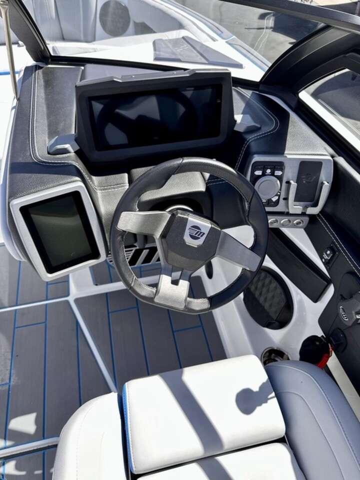 COMMAND CENTER WITH WIRELESS CHARGINGThe mOS (Malibu Operating System) was specially designed to put the driver’s information in the optimal location with easy-to-read graphics. Featuring a 30% higher resolution screen with deeper color depth, the 12” touch screen has never looked better. Tactile controls back up the touch screen so the driver can make quick adjustments without taking their eyes off the water.