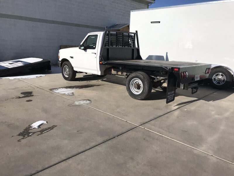 Temco Steel Flatbeds 7X7 7X8.6 Standard Steel Bed Gooseneck Hitch Lights Rub Rail and Stake Pockets