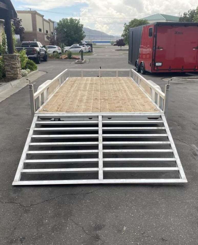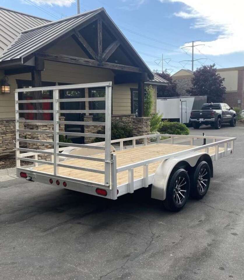 BONUS!!! PREMIUM MAG WHEELS UPGRADE!!! NEW! Baughman Aluminum 7x14 UTV/ATV/Utility Trailer with Rear Ramp!!! This is not your average trailer, this Premium Baughman comes with high strength aluminum welds, premium decking with D rings for easy tie down, super light rear load ramp, plus an easy to use pin locking ramp!! Did you know this trailer is light enough for most people to simply hand lift off your trailer ball!!?? Super light and easy to move around with built in tongue jack wheel!!! Recessed Lights, Weather Treated Wood Deck, and More! Call or Text to come pick up this gorgeous trailer!! PL065200