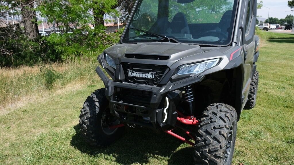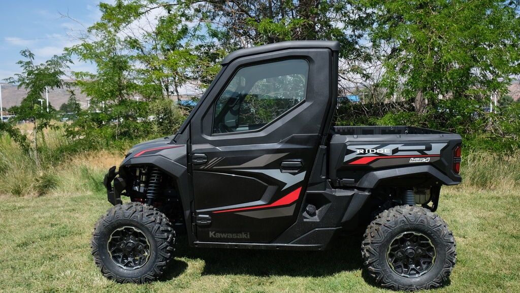 2024 Kawasaki Ridge® XR HVACThe all-new RIDGE® XR side x side sets the new off-road standard with a game-changing, 999cc Kawasaki-built in-line four-cylinder engine and an optimized chassis, combining to deliver exceptional ride quality. Inside, you'll experience premium controls and high-grade fit-and-finish details that make for remarkably comfortable recreational riding. Premium off-roading has arrived.Features may include:VERSATILE PERFORMANCEOFF-ROAD LIKE NEVER BEFOREAn all-new 999cc in-line four-cylinder engine equips RIDGE® XR side x sides for a wide range of conditions, from rugged work to advanced play. Unique, selectable Power Modes offer precise control when you need it most.PREMIUM COMFORTA BETTER RIDEClass-leading comfort starts with a highly composed chassis and spacious accommodations. A factory cab with advanced HVAC system (on select models) complements premium interior features with automotive-inspired fit and finish. Long-travel suspension and high ground clearance, as well as a high-capacity, flat cargo bed give RIDGE® XR the versatility to power through technical recreational riding and hard utility work with greater comfort. On-the-fly electrically selectable 4WD and both front and rear differential locks enhance ride comfort, while a high-tech cabin further promotes rider connection and ride quality.KAWASAKI QUALITYBUILT TO LASTKawasaki craftsmanship shines in every detail of RIDGE® XR. In addition to standard electric power steering, a high-quality fit and finish on both the exterior and interior yield a first-class ride that stands the test of time.ADDITIONALFactory standard full cab with heating, ventilation and air conditioning (HVAC)All-season interior comfortHVAC unit includes high-grade vents and preset mode selectionsRearview mirrorGlass rear panelGlass windshield with washer and wiper bladeFull doors with power glass windowsFull coverage roof with liner and dome lightHigh-grade vents
