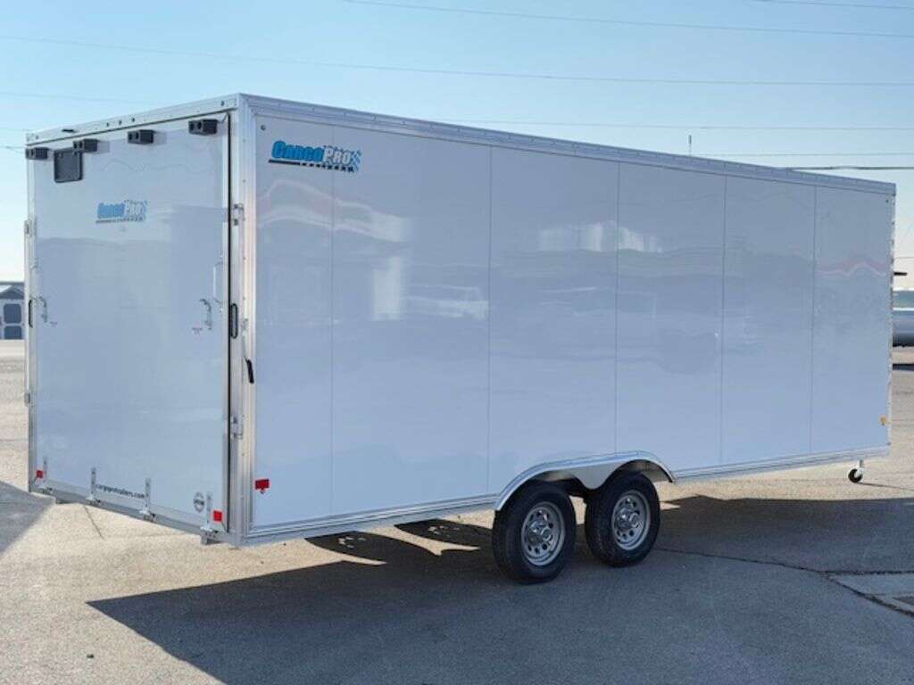 We are very excited to now be offering CargoPro and SnoPro Trailers. We just got this super nice all aluminum 8.5x22 enclosed snowmobile/UTV trailer. Comes with 48" cabinet, 9" of added box height, and an extra tall rear door. Call or text with any questions.