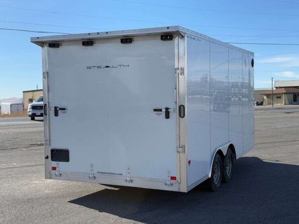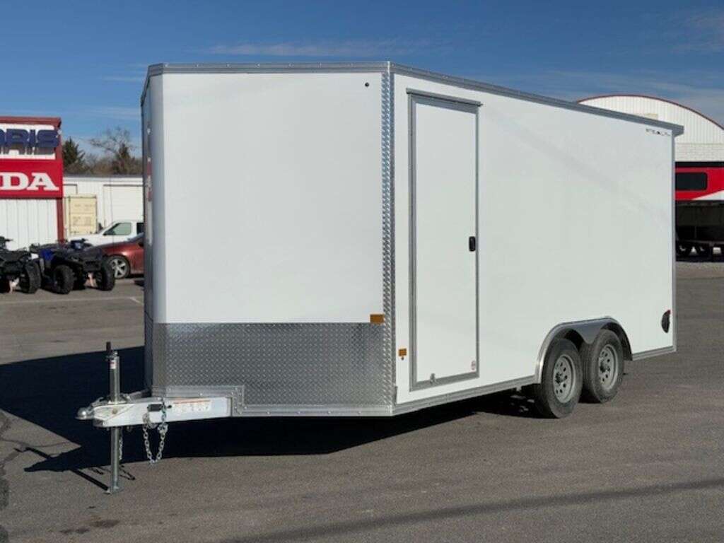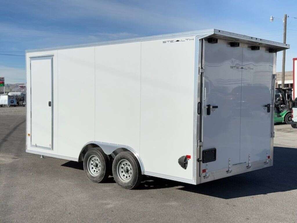 We are very excited to now be offering STEALTH Trailers. We just got this super nice all aluminum 8.5x16 enclosed UTV trailer. Comes with 6" of added box height, and an extra tall rear door also has recessed slide track. Call or text with any questions.