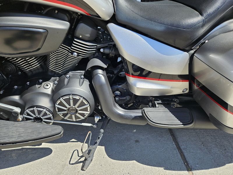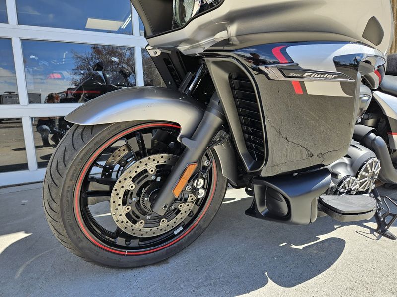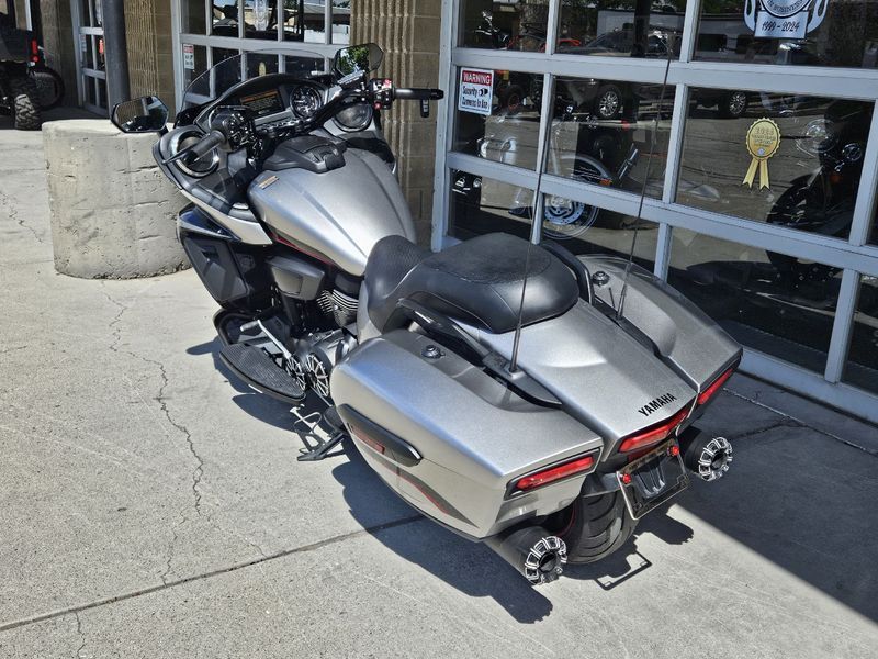 Gas prices are up, but our prices are still low! Commute in a bike this summer and save hundreds every month! **Check www.ssautobrokers.com (http://www.ssautobrokers.com) for more photos and info! 2024 Quality Dealer of the Year! 27 years in business! We are very honored to be voted Utah's Quality Dealer of the Year! This is a reflection of ethical business and top quality service to our customers! We look forward to showing everyone why we were voted Quality Dealer of the Year! Buying from a broker with NO freight/fuel/set up fees and low overhead = LOWER prices! Having the best pricing in the industry, our pricing is the SAME for RETAIL CONSUMERS & DEALERS! 9,678 Miles! This Eluder comes equipped with a 1800cc engine, 6-speed transmission, fuel injection, liquid cooled, belt driven, disc brakes, dual black pipes with aftermarket Arlen Ness tips, Arlen Ness license plate cover, silver paint scheme with red/black pin stripes, paint matched fairing with hard locking saddle bags, black two up leather seat, passenger mini floor boards, rider floor boards, cruise control, stereo bar mounted controls, full fairing, speedometer gauge, tachometer gauge, digital touchscreen information screen with AM/FM/BT media with dual speakers in fairing, Arlen Ness black and machined covers all around the bike, and more! Come in and check it out today! We are located at 2070 Wall Ave, Ogden UT 84401. For more information please contact: Cameron 801-645-7880, Kobe 801-452-1228, Kooper 801-710-0378, or our Sales Dept at 801-334-6688. We have the best financing and customer service available. Visit our website at www.ssautobrokers.com (http://www.ssautobrokers.com) to see all of our inventory including cars/trucks/bikes/powersports/RV's/boats & more! WE TAKE ALMOST ANYTHING IN ON TRADE! DLR #1747 Engine and transmission Engine size 1851.9 ccm (113.00 cubic inches) Type of engine V2, four-stroke Output 89.9 HP (65.6 kW)) @ 4250 RPM Torque 171.0 Nm (17.4 kgf-m or 126.1 ft.lbs) @ 2500 RPM Compression 9.5:1 Bore x stroke 100.0 x 118.0 mm (3.9 x 4.6 inches) Valves per cylinder 4 Fuel system Injection. Yamaha Fuel Injection with YCC-T and D-Mode Fuel control Overhead Valves (OHV) Ignition TCI Cooling system Air Gearbox 6-speed Transmission type Belt (final drive) Clutch Multiplate assist and slipper wet clutch Chassis, suspension, brakes and wheels Rake (fork angle) 31.0∞ Trail 145 mm (5.7 inches) Front suspension 46mm telescopic fork Front wheel travel 130 mm (5.1 inches) Rear suspension Single shock with remote preload adjustment Rear wheel travel 109 mm (4.3 inches) Front tire 130/70-R18 Rear tire 200/55-R16 Front brakes Double disc. ABS. Hydraulic. Diameter 298 mm (11.7 inches) Rear brakes Single disc. ABS. Hydraulic. Diameter 320 mm (12.6 inches) Physical measures and capacities Weight incl. oil, gas, etc 396.9 kg (875.0 pounds) Seat height 701 mm (27.6 inches) If adjustable, lowest setting. Overall height 1275 mm (50.2 inches) Overall length 2489 mm (98.0 inches) Overall width 975 mm (38.4 inches) Ground clearance 124 mm (4.9 inches) Wheelbase 1709 mm (67.3 inches)