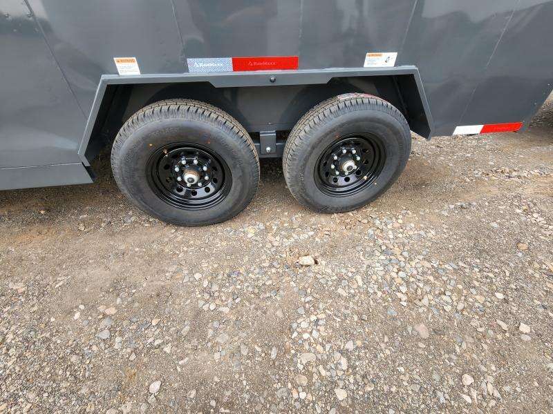 SPECS WIDTH: 8.5' LENGTH: 16' DOOR(S)/RAMP(S): Double Doors WEIGHT: 4806 lb GVWR: 14000 lb PAYLOAD: 9194 lb AXLE(S): Tandem 7000 lb Electric Brake Spring Axles TIRES: 16" Black Wheels COUPLER: 2 5/16"\