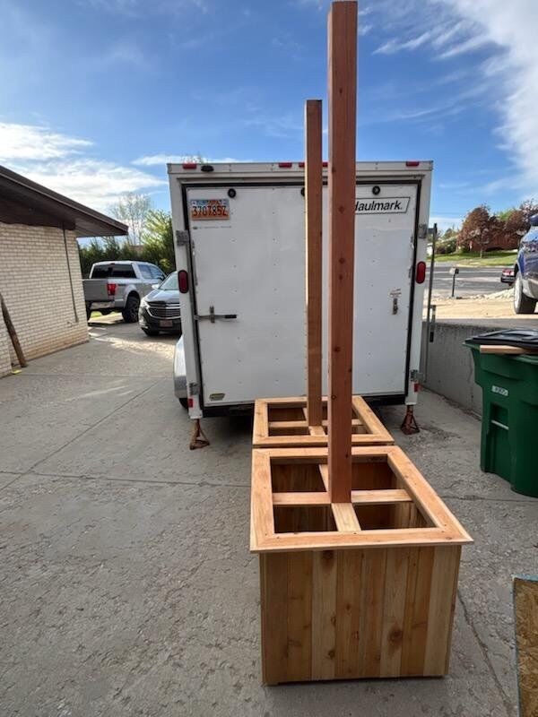 24x24 inch boxes. 8' tall. Will custom make any size up to 24x24 for this price. Comes with 2 plant hangers each. We stain and weather seal them unless you prefer them natural. $250 for both or $125 for one. $10 delivery fee within 15 miles from Kaysville.