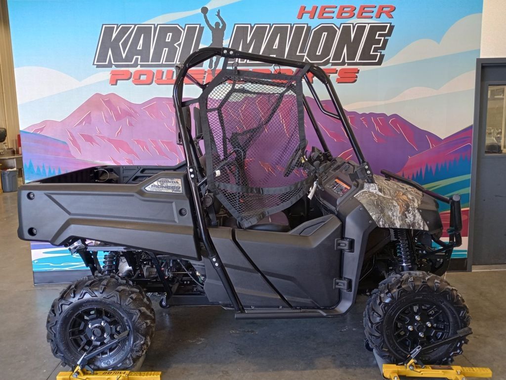 2025 Honda® Pioneer 700 Forest PERFECTLY SIZED TO BE INCREDIBLY VERSATILE The great outdoors isn’t like a golf course. You don’t get to drag around a bag full of clubs and choose one specialized tool for each job or adventure. At least not when you’re talking about side-by-sides. You need a vehicle that puts a premium on versatility, striking a balance between size and capability, while still offering plenty of features. The answer: a Honda Pioneer 700. In terms of engine displacement and chassis size, a Pioneer 700 sits right in the middle of our Pioneer lineup—not too big and not too small. The overall size and Honda refinement means it handles like a dream. And if you need to carry even more passengers, make sure to check out our four-occupant Pioneer 700-4 models. Features may include: HANDLING ELECTRIC POWER STEERING (EPS) Available on the Deluxe and Forest models, our Electric Power Steering has always been a groundbreaking innovation, especially with its next-generation brushless motor and return-to-center function. ENGINEERING AT/MT MODE AND PADDLE SHIFTERS On the Deluxe and Forest trims, you have the option to either let the automatic transmission shift for you or take charge and choose which gear you want for yourself using the steering column-mounted paddle shifters. You can even shift from auto to manual on the fly. Honda AUTOMATIC TRANSMISSION The automatic transmission’s heavy-duty torque converter, three hydraulic clutches, and two-stage shift map achieve smooth shifting, steady power, and optimized torque delivery, which also enhances performance at higher RPM ranges. PERFORMANCE RUGGED 675cc LIQUID-COOLED ENGINE Experience the power and reliability of the 675cc four-stroke single. It's rubber-mounted to reduce cabin vibration, fuel-injected for reliable starts and performance in any weather, and proven to provide endless thrills. VERSATILITY INSTRUMENT DISPLAY The display has a large LCD screen, multiple trip functions, battery-voltage readout, a tachometer array, and more. It tilts with the wheel for easier reading. COMFORT TILTING STEERING WHEEL A tilt feature on the steering wheel, standard on all models, makes getting in and out much easier. The instrument pod also tilts with the wheel. SAFETY DISC BRAKES Our triple-disc brakes with a patented scraper system enable you to handle any terrain confidently. The 200mm front and 170mm rear discs deliver exceptional stopping power, ensuring safety.