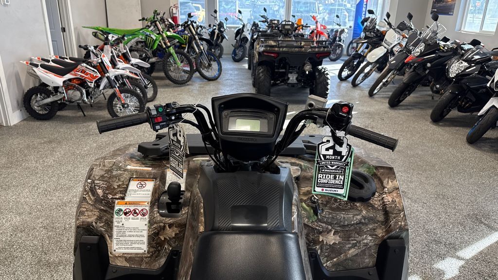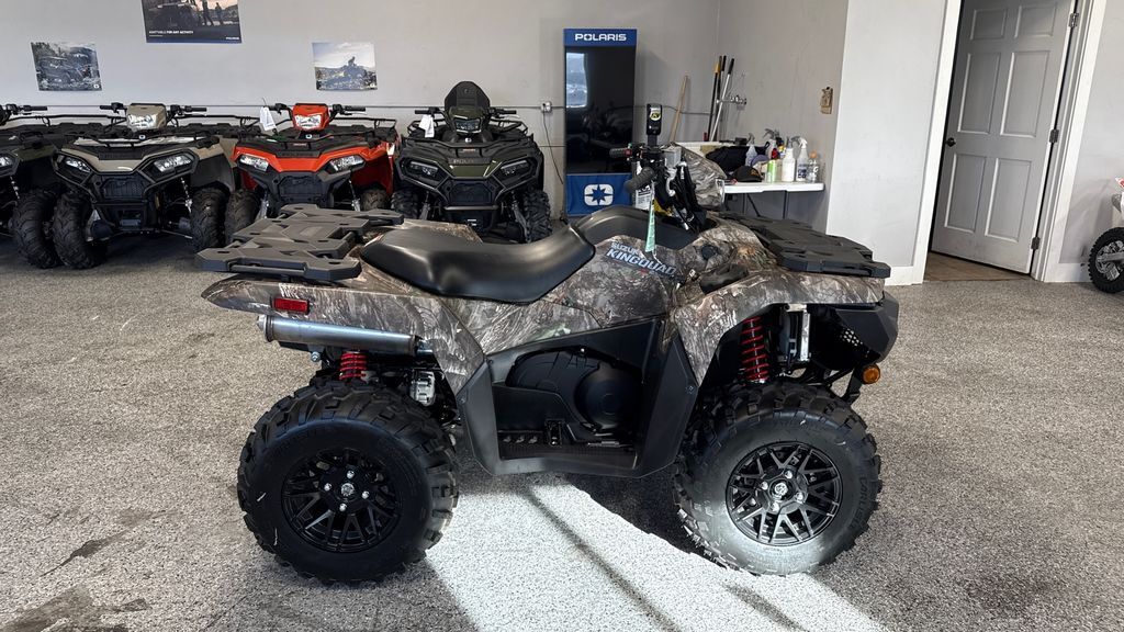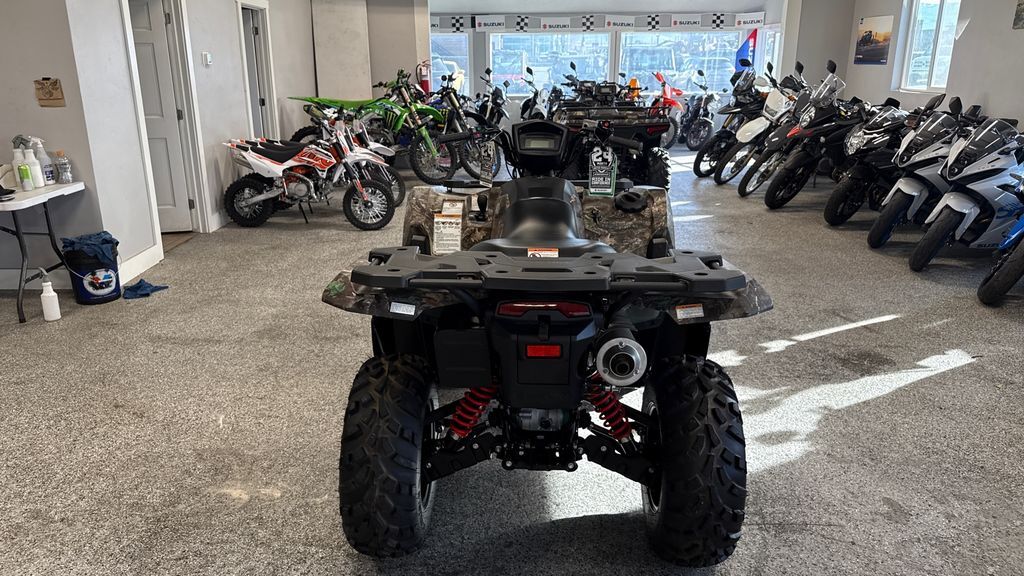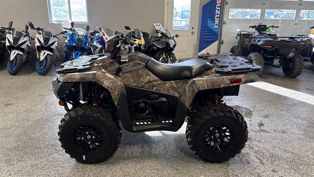 2023 Suzuki KingQuad 500AXi Power Steering SE+ The KingQuad 500AXi Power Steering SE+ is not just an ATV, it's a KingQuad ATV. Suzuki, the inventor of the 4-wheel ATV, has created the world's best sports-utility quad with bold styling plus more capability and reliability than ever before. The legacy of the iconic KingQuad remains fresh and exciting, and is ready for you to join its history. The 2023 KingQuad 500AXi Power Steering SE+ is easy to ride on any terrain with the capabilities that only a KingQuad possesses. Features may include: Key Aggressive bodywork in Metallic Matte Rocky Gray color with blacked-out cast aluminum wheels. Bold, angular styling, and a relaxed riding position with low-effort electronic power steering. Generous towing capacity, fully independent suspension, and easy to ride on any terrain. Engine The powerful 493cc, SOHC, single-cylinder, liquid-cooled, four-stroke engine is tuned to produce a wide powerband with strong top-end power. The engine’s head and cylinder are canted forward for a low center of gravity, resulting in reduced engine height and lower seat height. The engine also features a balancer shaft for smooth operation. The compact four-valve cylinder head has large intake valves and straight intake ports for superb cylinder charging efficiency. Screw and nut valve lash adjuster simplify maintenance. A lightweight aluminum cylinder uses SCEM (Suzuki Composite Electrochemical Material) coating for excellent heat transfer and ring sealing, resulting in superb combustion chamber efficiency. Transmission The QuadMatic CVT-type automatic transmission provides versatility and convenience with a fender-mounted gate-type shifter for high/low range selection. Its advanced engine-braking system minimizes free-wheeling with the throttle off and helps control the vehicle during descents. A compact torque-sensing limited-slip front differential offers potent traction plus light steering. A differential-lock system provides serious 4WD traction. Handlebar-mounted push-button controls permit easy selection between 2WD, 4WD, and differential-lock 4WD. An override button on the left handlebar can be used to override the normal speed limiter when getting out of mud. Chassis Coated with a special matte gray finish, the bold, angular bodywork features high-clearance fenders that offer great protection for the rider from flying debris. The body panels were designed to simplify maintenance needs, such as oil level checks and fuel and air filter service. To increase rider comfort, make the ATV easier to ride on any terrain, and increase towing capacity, the KingQuad’s frame has thick-wall tubes and reinforced brackets in key areas. Utility Convenience The 35-watt handlebar-mounted headlight illuminates the trail in the direction you are steering the ATV. Dual 35-watt headlights (with high and low settings) are part of the KingQuad's distinctive bodywork. The low-draw and bright LED tail light helps make the ATV visible in dark conditions while conserving power. A receiver-type trailer hitch mount makes it easy to select the type of equipment you want to move with the KingQuad’s generous towing capacity (up to 1322 pounds). Winch-ready mounts and wire conduit make winch installation simple.