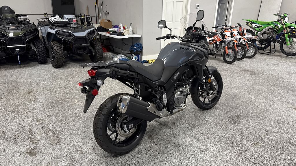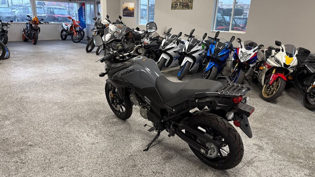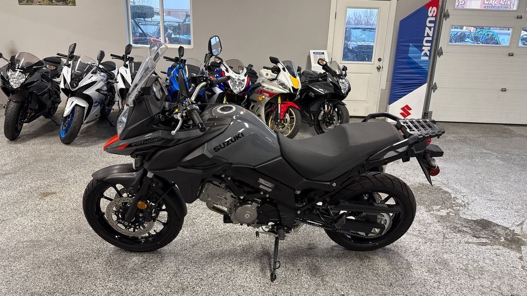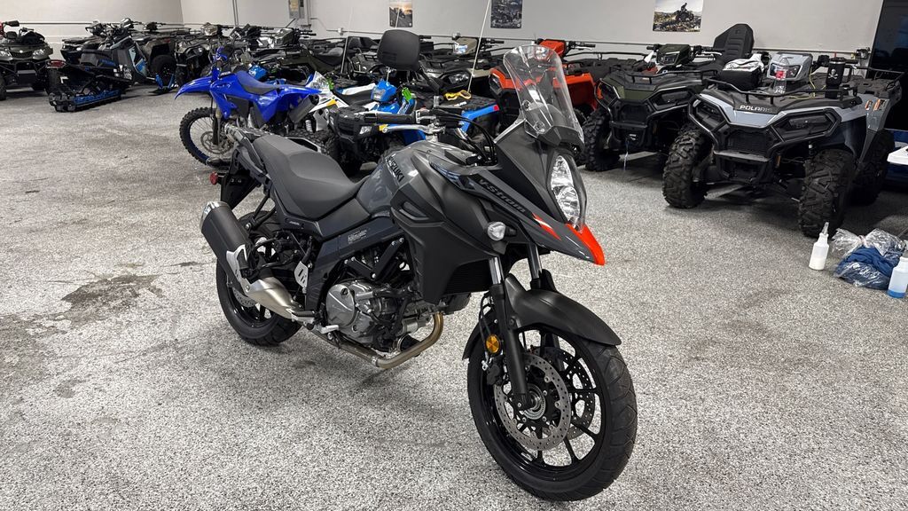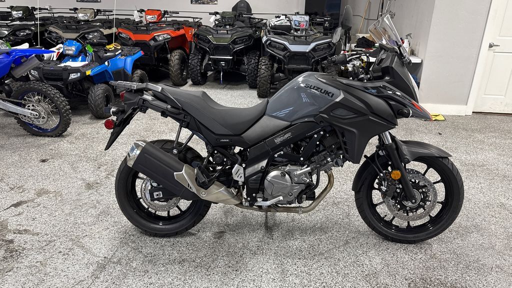 2024 Suzuki V-Strom 650 Renowned for versatility, reliability, and value, Suzuki’s V-Strom 650 models have attracted many riders who use their motorcycles for touring, commuting, or a fun ride when the spirit moves them. These are touchstone motorcycles balanced with a natural riding position, comfortable seat, and a flexible engine character that produces stress-free riding during brief daily use or a high-mile adventure. Continuing the V-Strom family tradition of being a fun and logical motorcycle to buy and ride, the 650’s engine delivers stellar performance and great fuel economy while achieving worldwide emission standards. Suzuki’s engineering accomplishments also include low weight and a trim chassis, creating a V-Strom 650 that is versatile, controllable, and financially accessible. The V-Strom 650 is an adventure bike that’s greater than the sum of its parts, offering versatility and reliability like no other bike in its class. Check out a V-Strom for your next ride and you’ll see it answers your motorcycling questions while bringing a big dose of fun when you take it down any type of road. Features may include: Coated in Solid Iron Gray paint, the effective fairing with vertically stacked headlights, adjustable windshield, and iconic Suzuki DR-Big styling adds true adventure style and real-world function. ENGINE Using SV650 engineering, the V-Strom 650’s DOHC, liquid-cooled engine has been tuned to deliver clean, strong power at any rpm. Unique engine cover hardware and select other fasteners are designed to permit the use of Torx or conventional hex-style tools. CHASSIS The beak-style fairing, with vertically stacked headlights and a stronger internal structure, helps the V-Strom 650 cut through the wind, protecting the rider in style. The fuel tank has a generous 5.3-gallon capacity but is shaped to be thin at the rear to flow into the slimmer seat, which aids the rider in touching the ground at stops. ELECTRICAL The multifunction instrument panel features brightness-adjustable LED backlighting for its large diameter analog tachometer, digital speedometer, and LCD data display. LED indicators include an ABS alert and a freeze warning icon, which together with the air temperature display warn of possible icy road conditions.